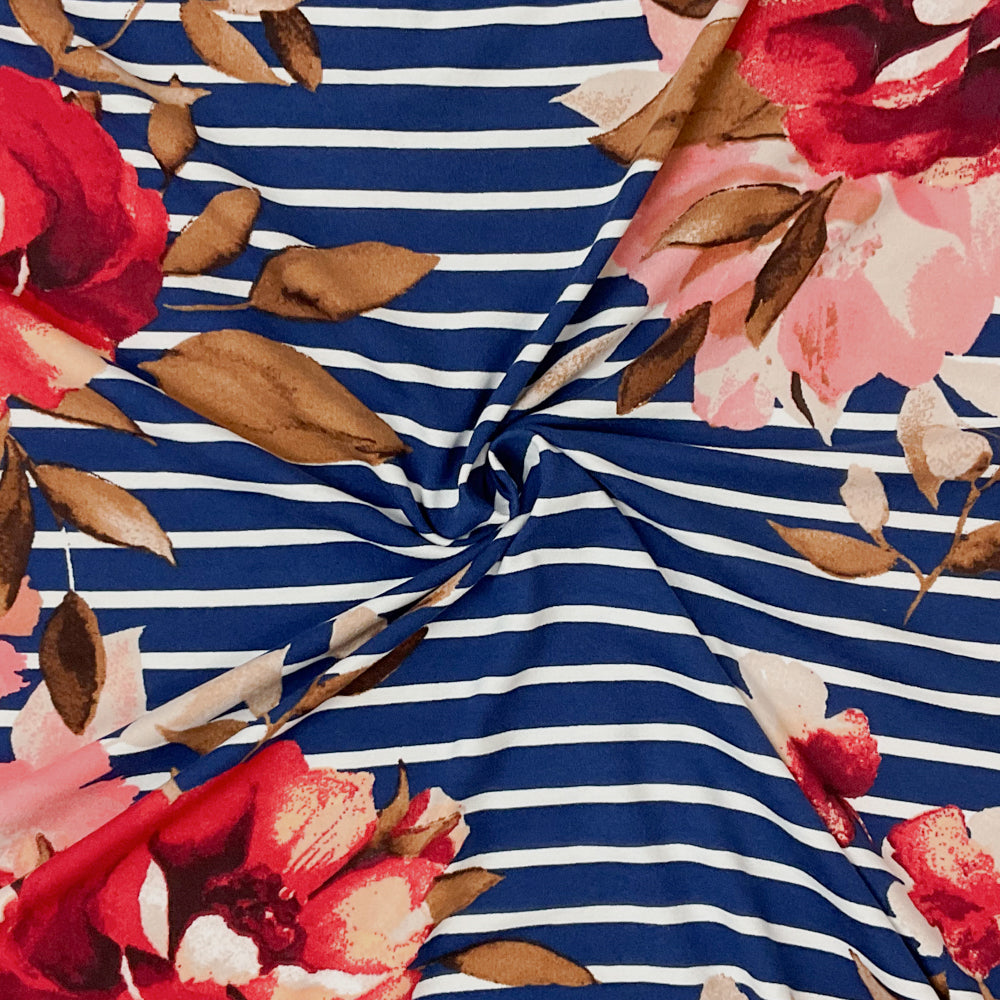 Blue-Multi Poly Stretch Spandex Floral Print DB Jersey Knit Fabric
