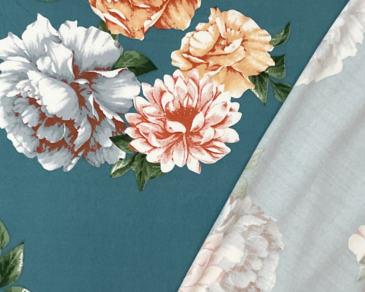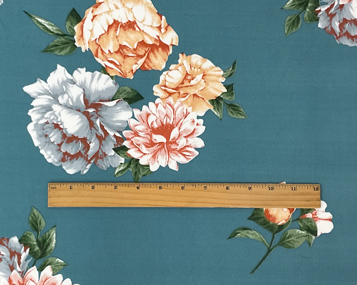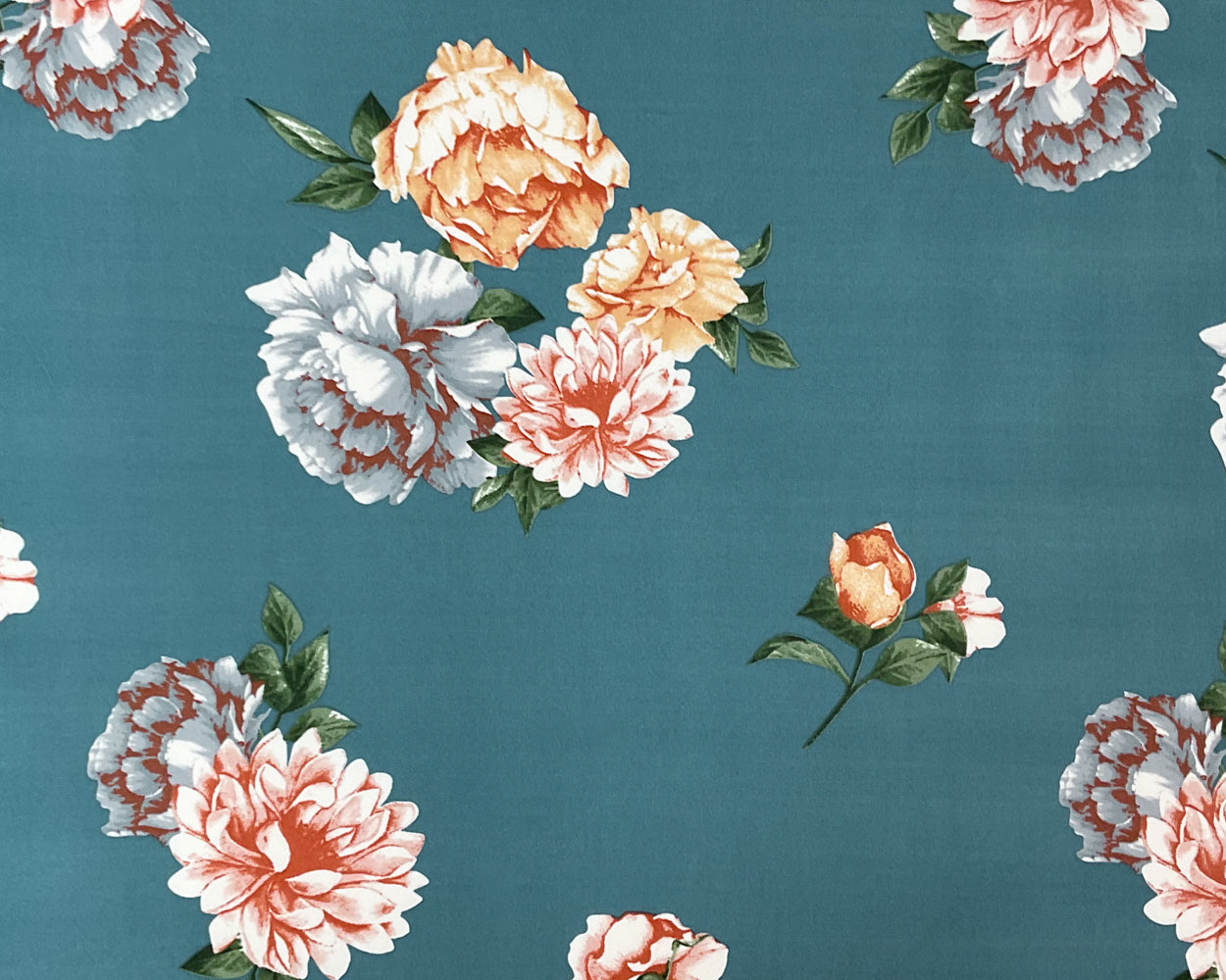Teal Blue-Multi Poly Spandex Stretch Floral Print DB Jersey Knit Fabric