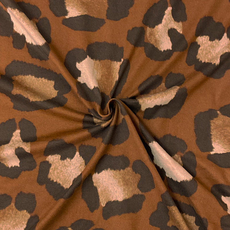 Brown-Multi Poly Stretch Leopard Print DB Jersey Knit Fabric