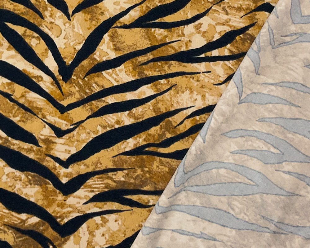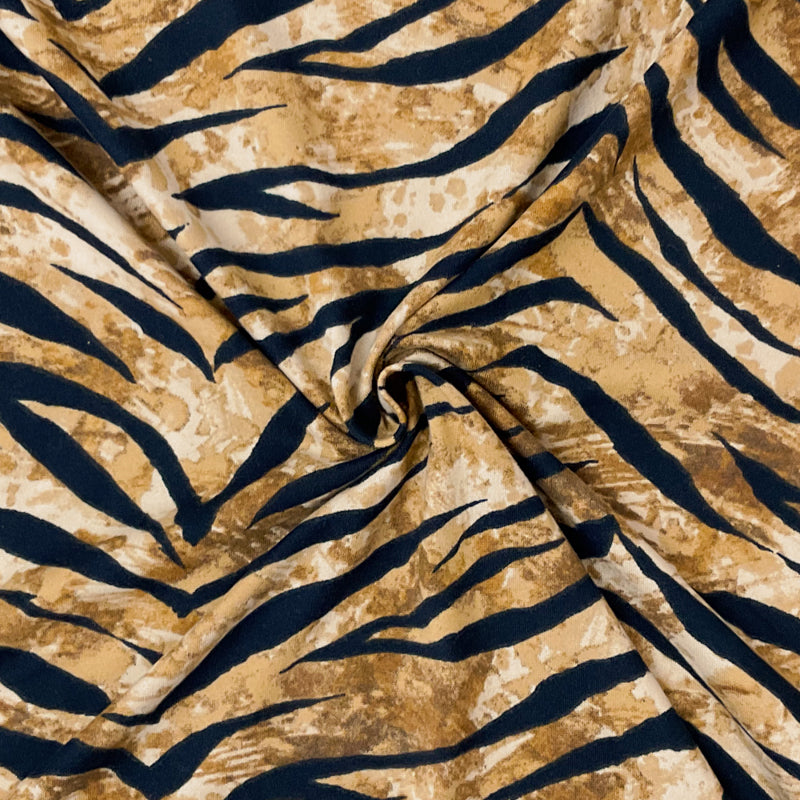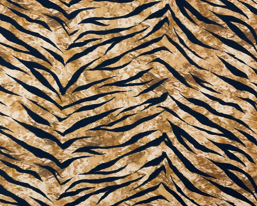 Brown-Multi Poly Stretch Tiger Print DB Jersey Knit Fabric