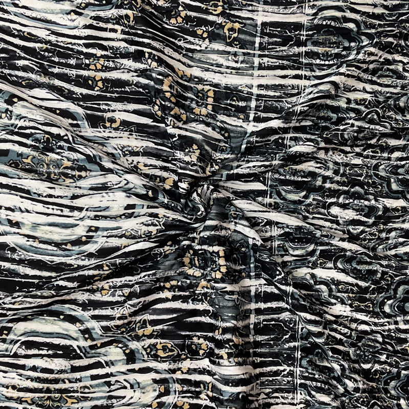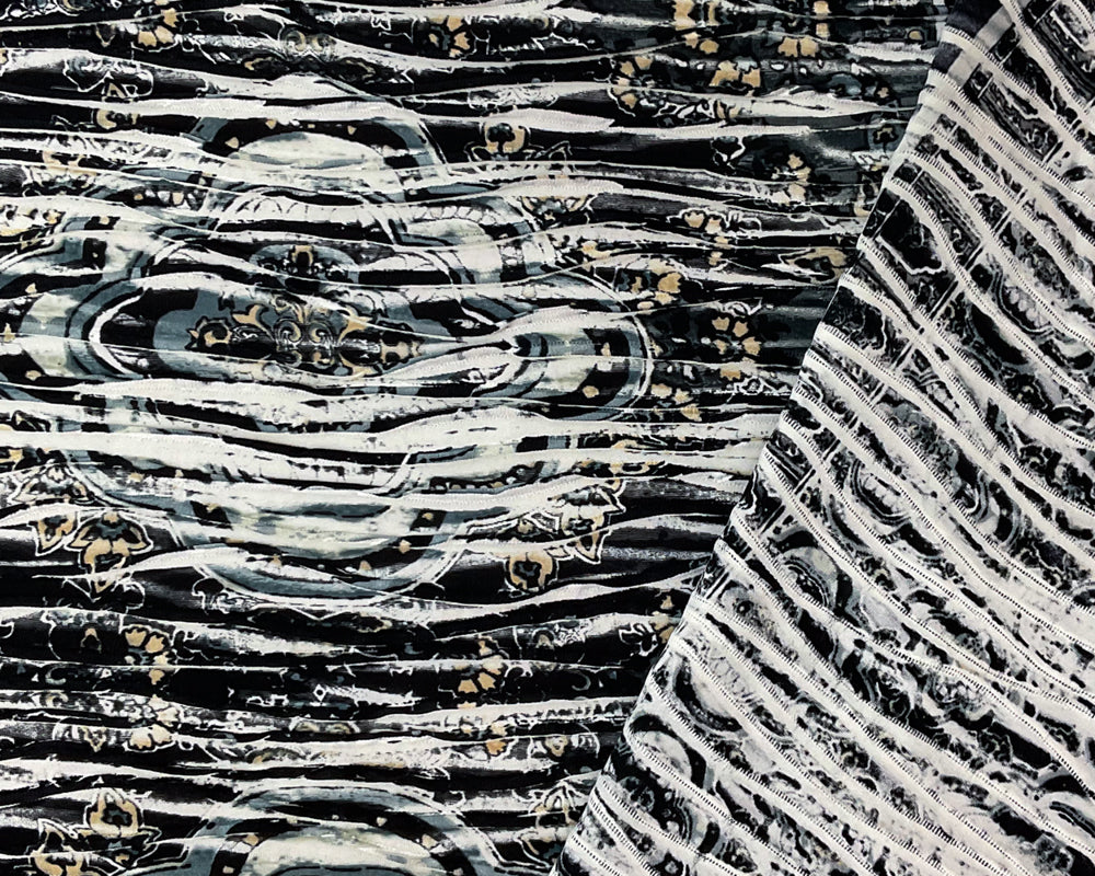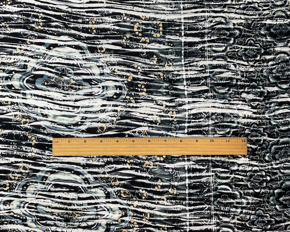 Black-Gray Poly Medallion Border Printed Knife Pleat Knit Fabric