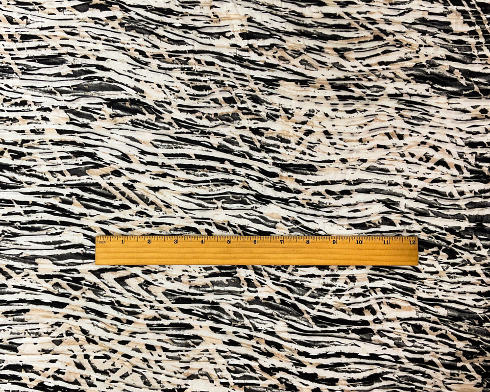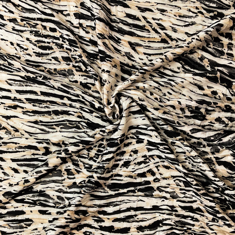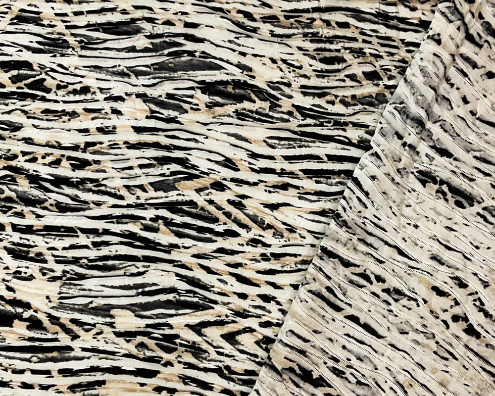 Black-Multi Poly Abstract Chevron Printed Knife Pleat Knit Fabric