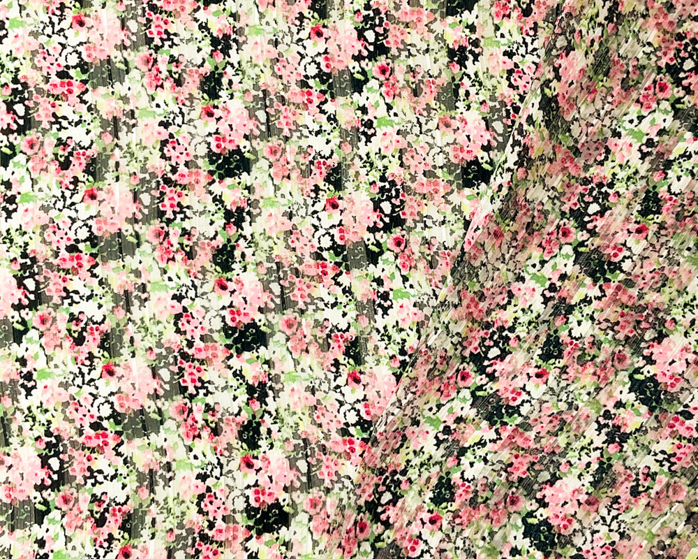 Black-Multi Poly Floral Printed Satin Stripe Chiffon Woven Fabric