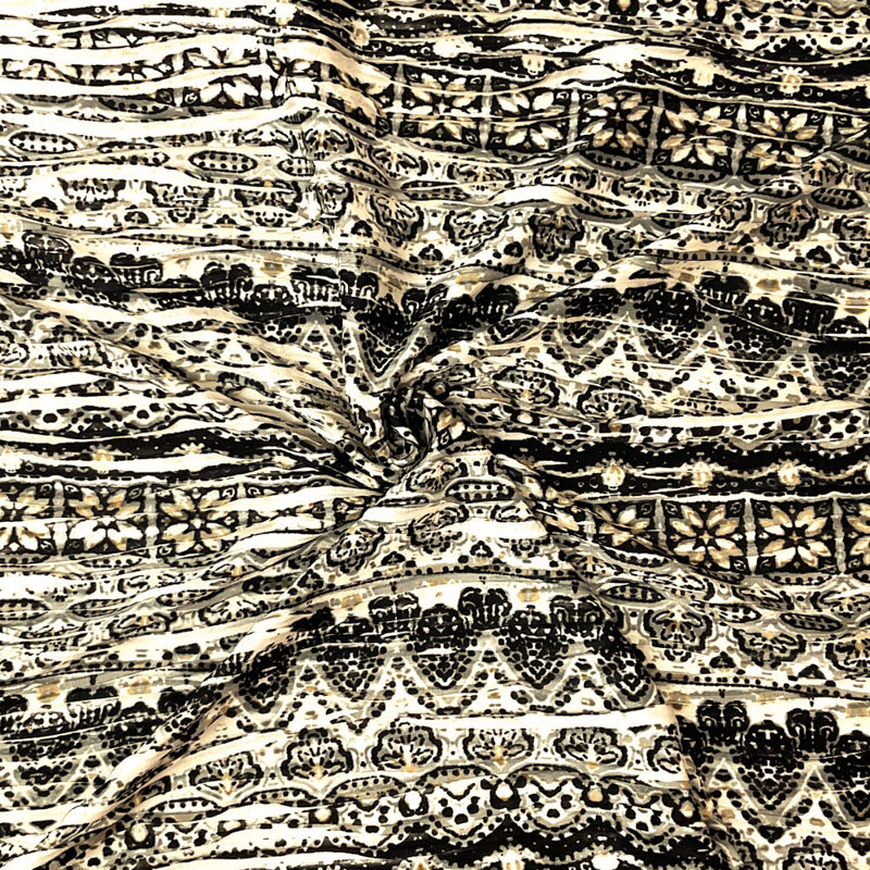 Blue-Gray-Multi Poly Boho Printed Knife Pleat Knit Fabric