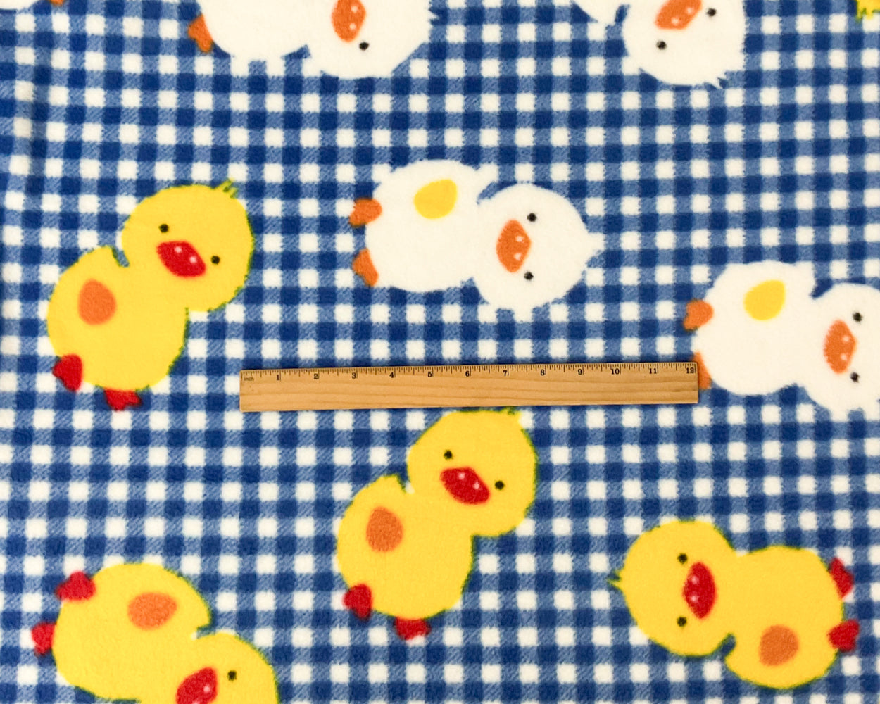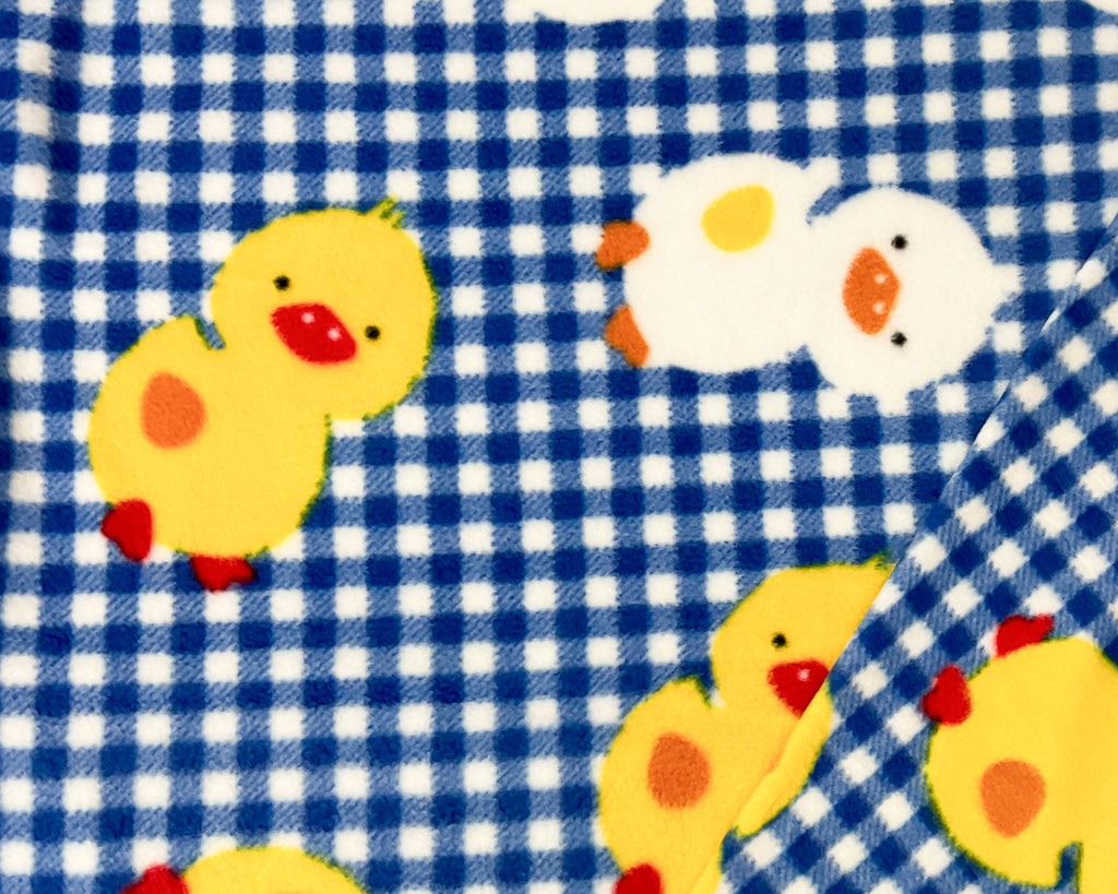 Blue-White-Multi Polyester Duck Check Printed Polar Fleece Knit Fabric