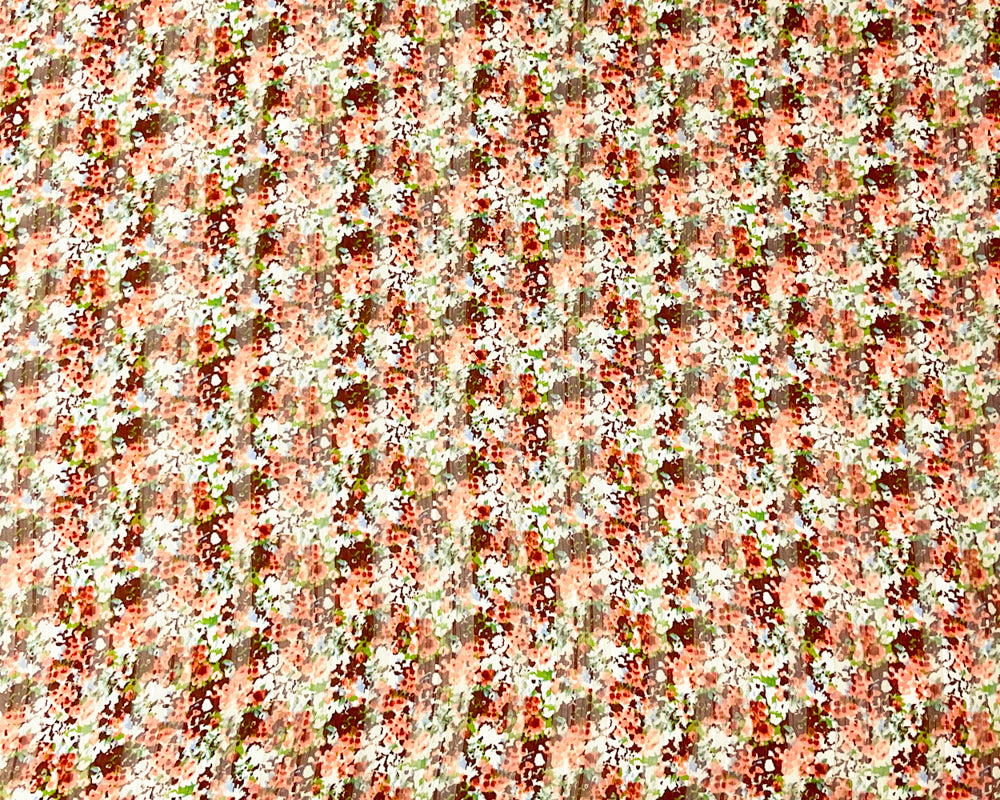 Brown-Multi Poly Floral Printed Satin Stripe Chiffon Woven Fabric
