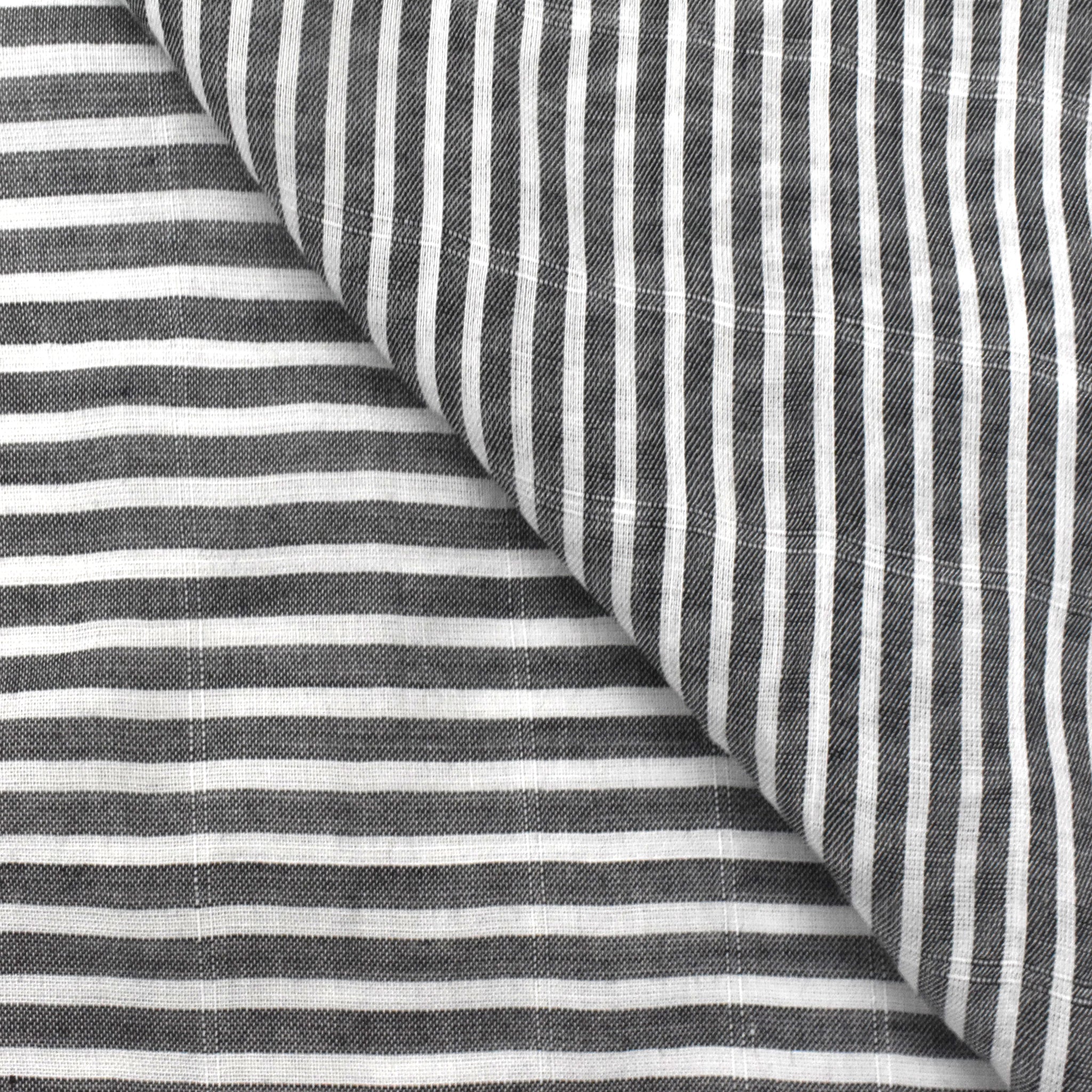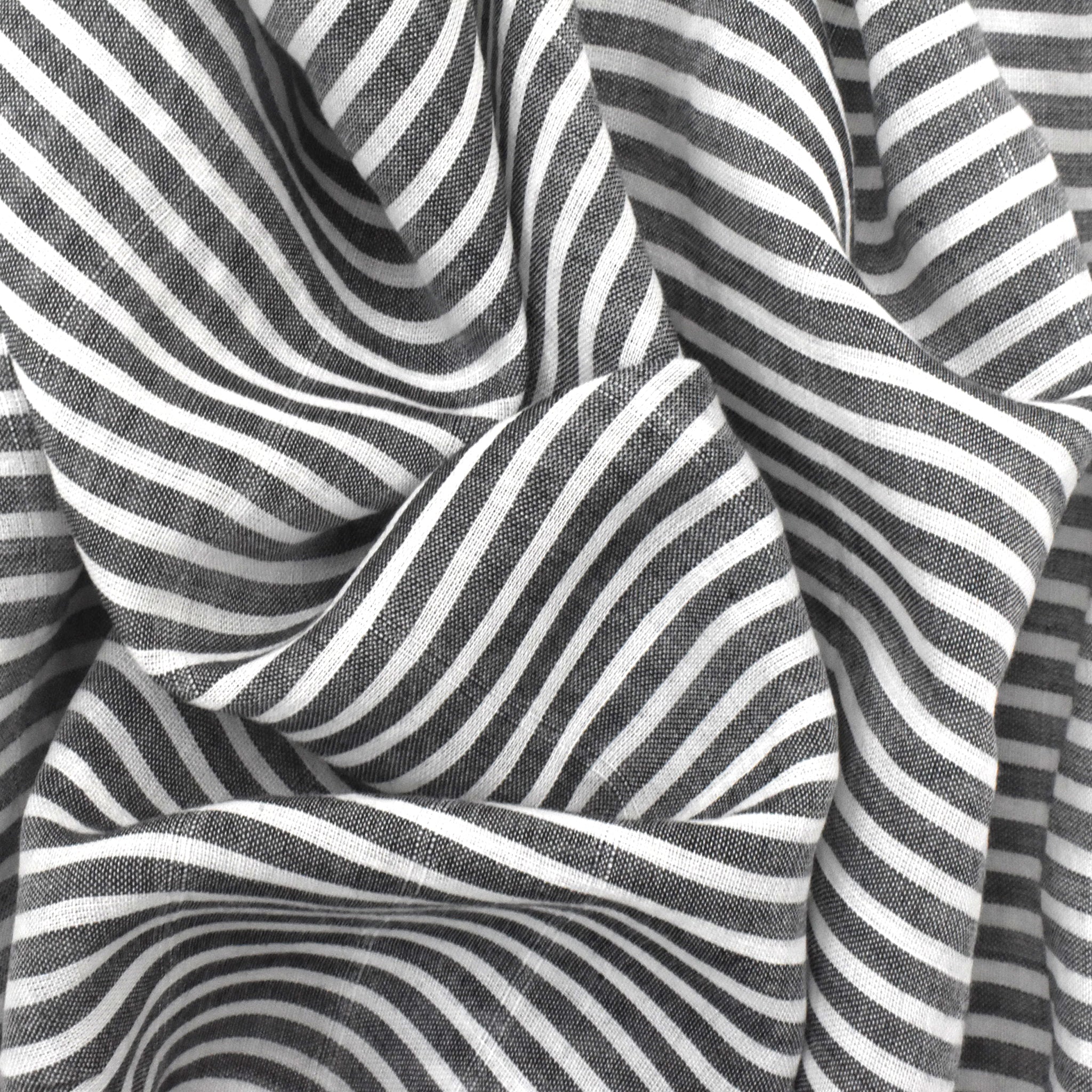 Charcoal Gray-White Striped Slub Rayon Lawn Fabric