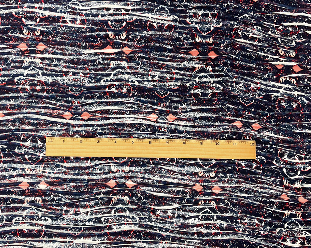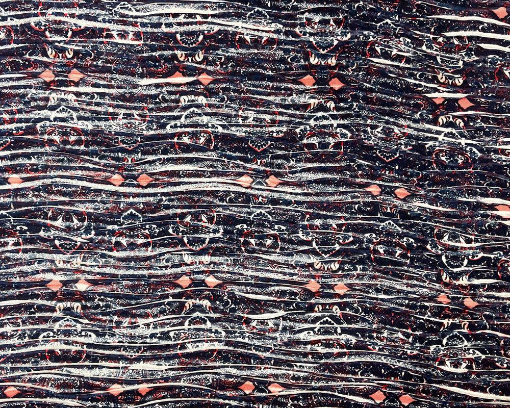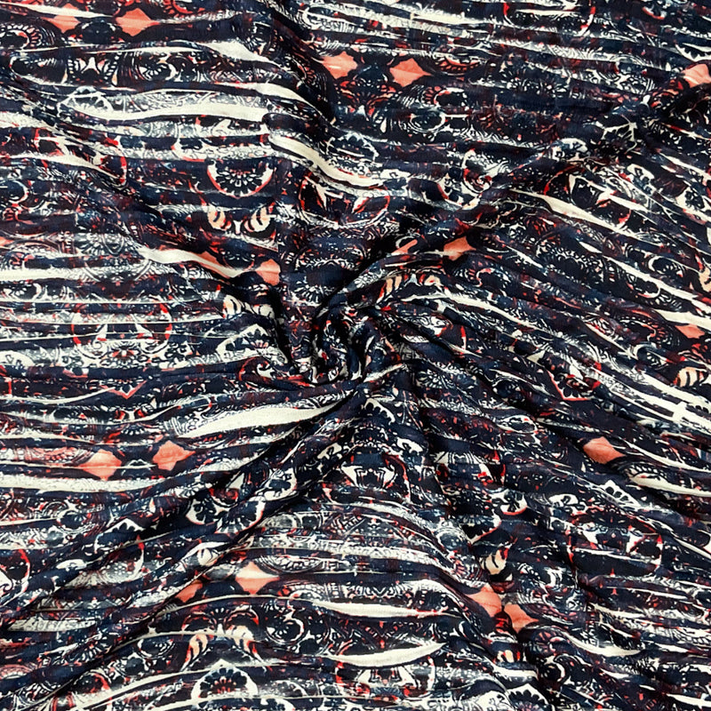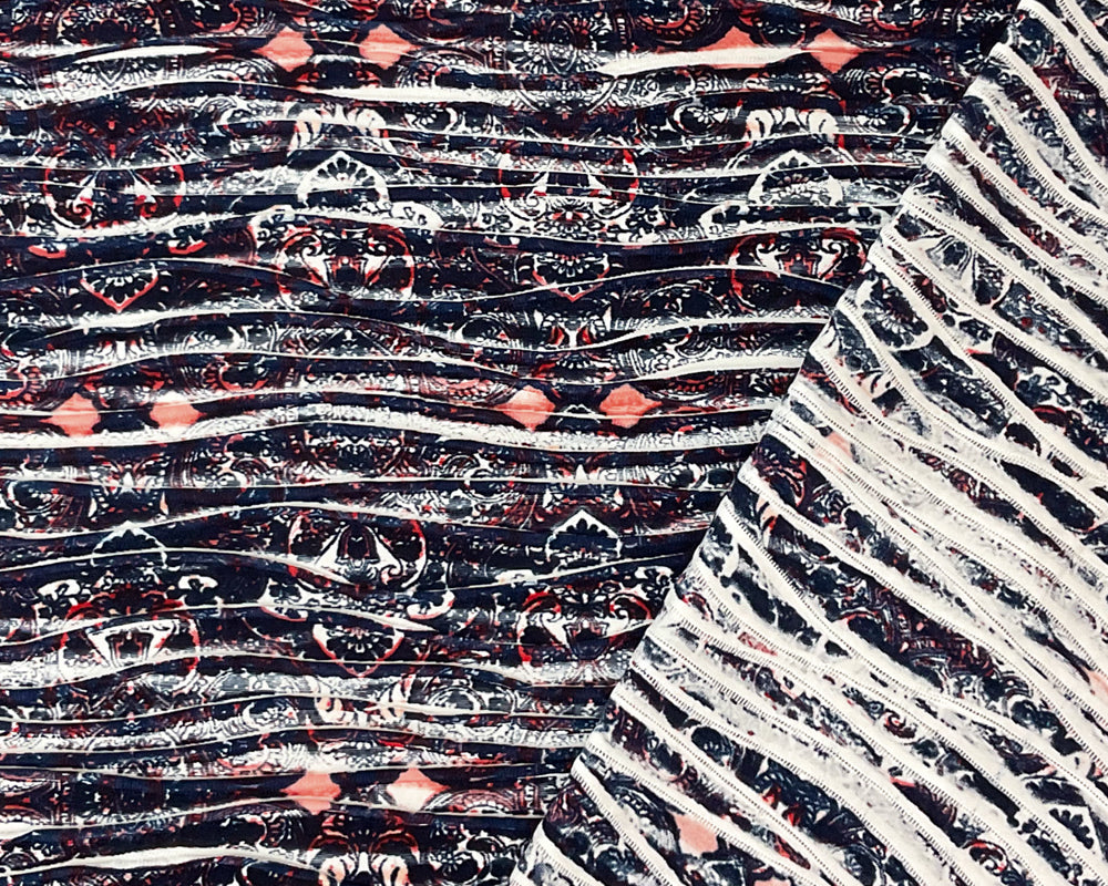 Deep Blue-Multi Poly Baroque Printed Knife Pleat Knit Fabric