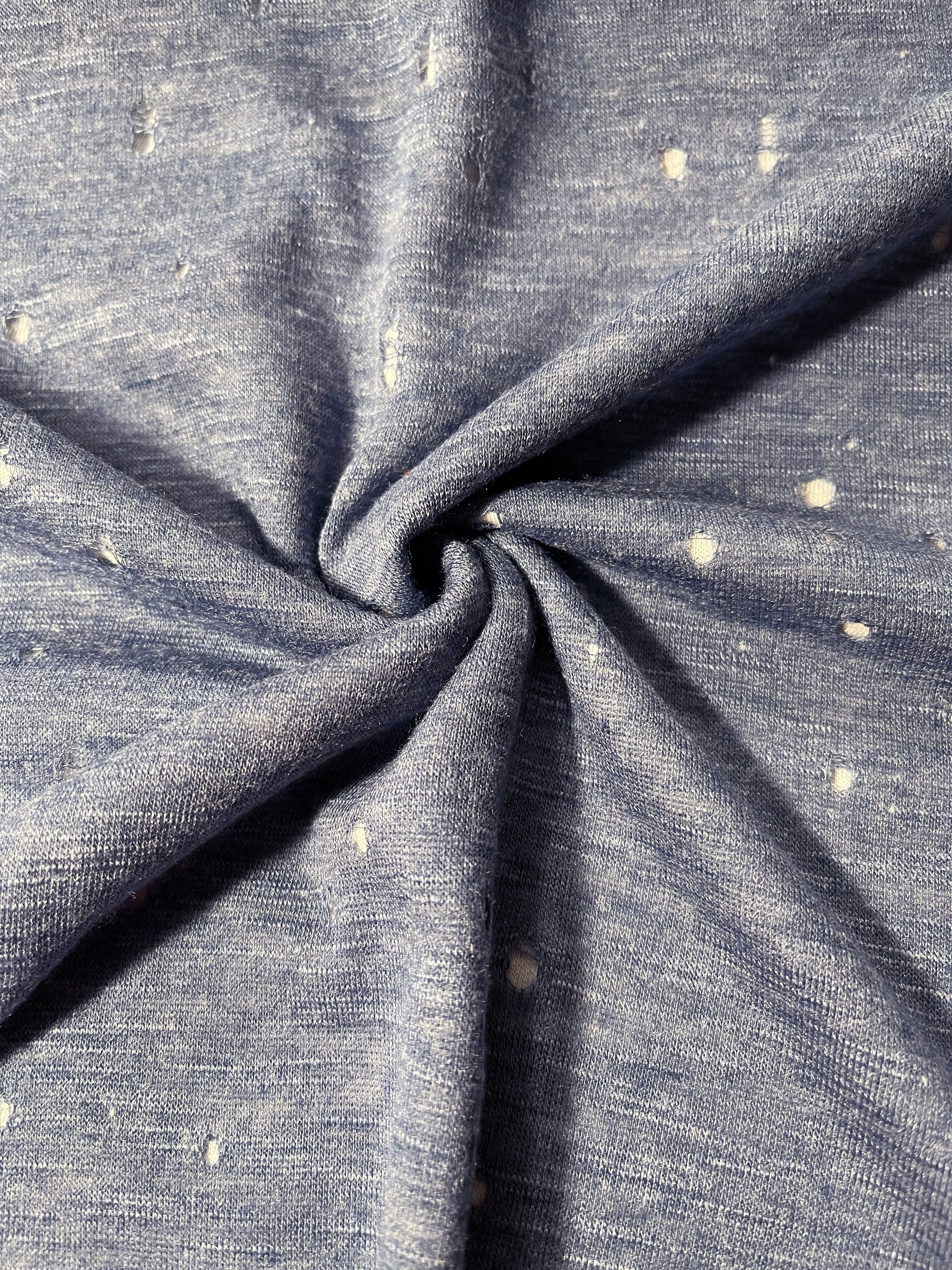 Heather Indigo Blue Distress Cut Jersey Knit Fabric