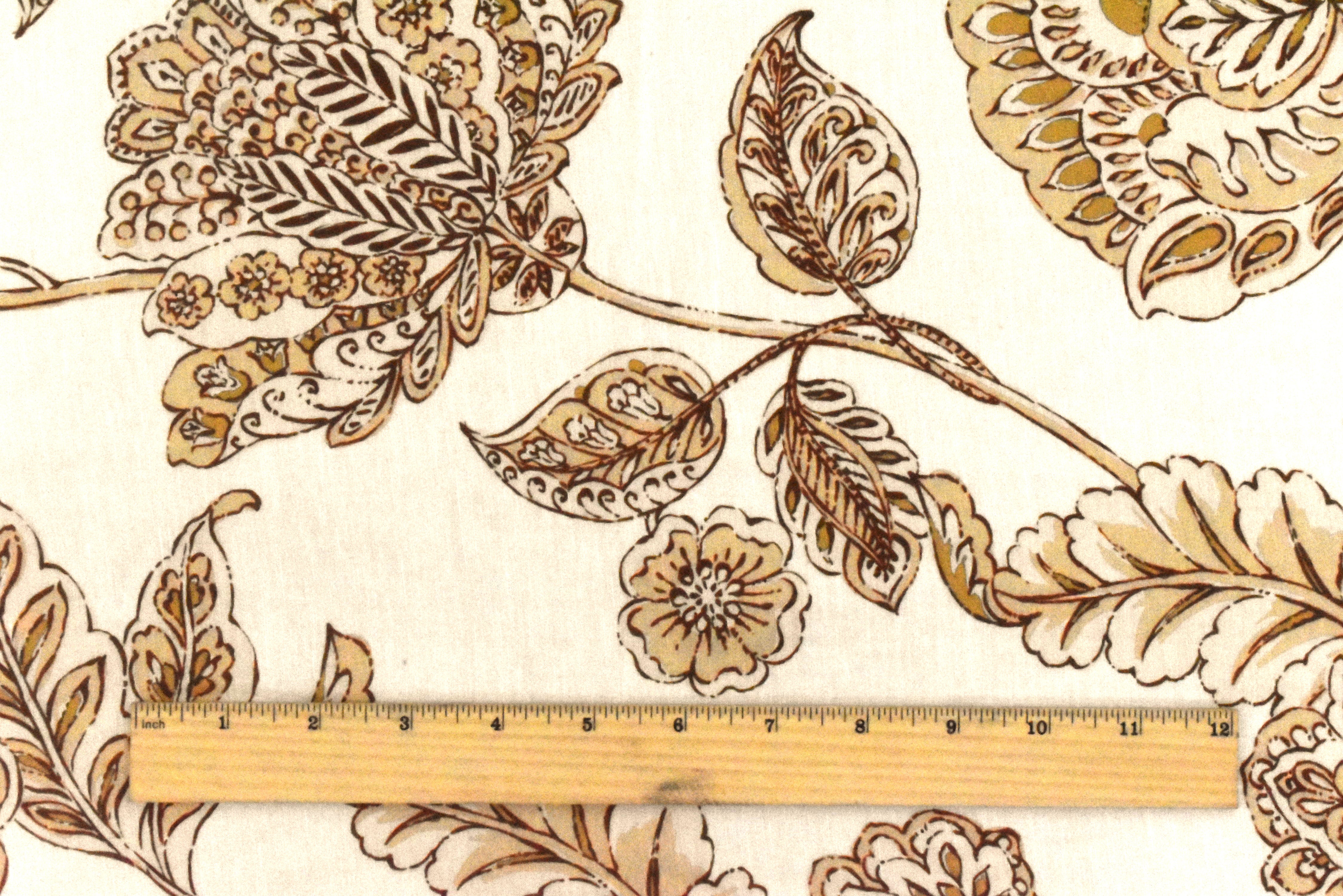 Ivory-Multi Flax Blend Famous Designer Floral Printed Slub Woven Fabric