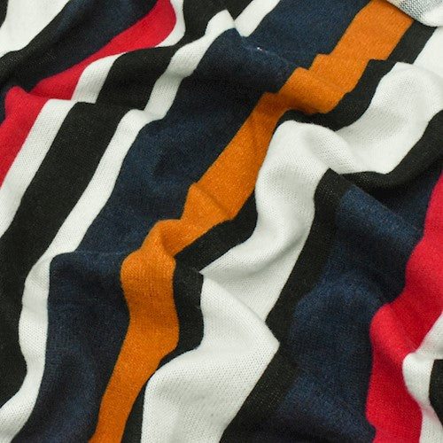 Navy/Multi Stripe Multi-color Brushed Jersey Stretch Knit Fabric