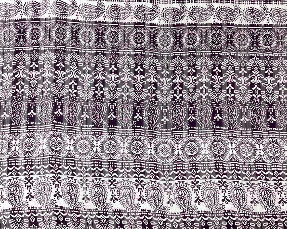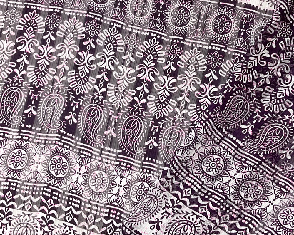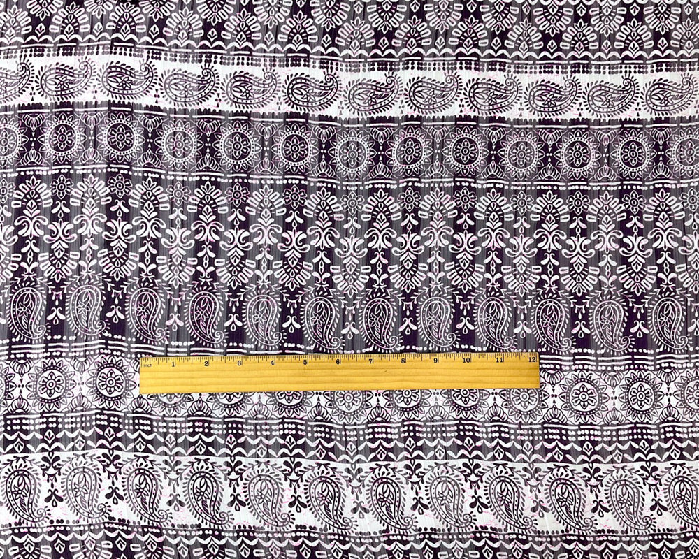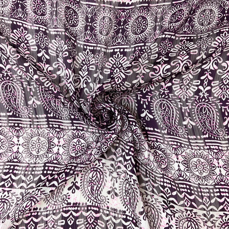 Purple-Multi Poly Paisley Print Satin Stripe Chiffon Woven Fabric