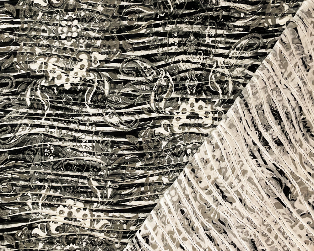 White-Black-Beige Poly Baroque Printed Knife Pleat Knit Fabric