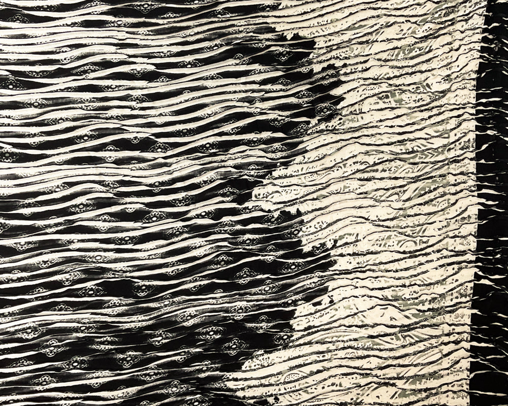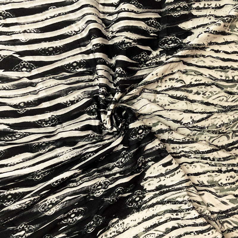 White-Multi Poly Baroque Border Printed Knife Pleat Knit Fabric