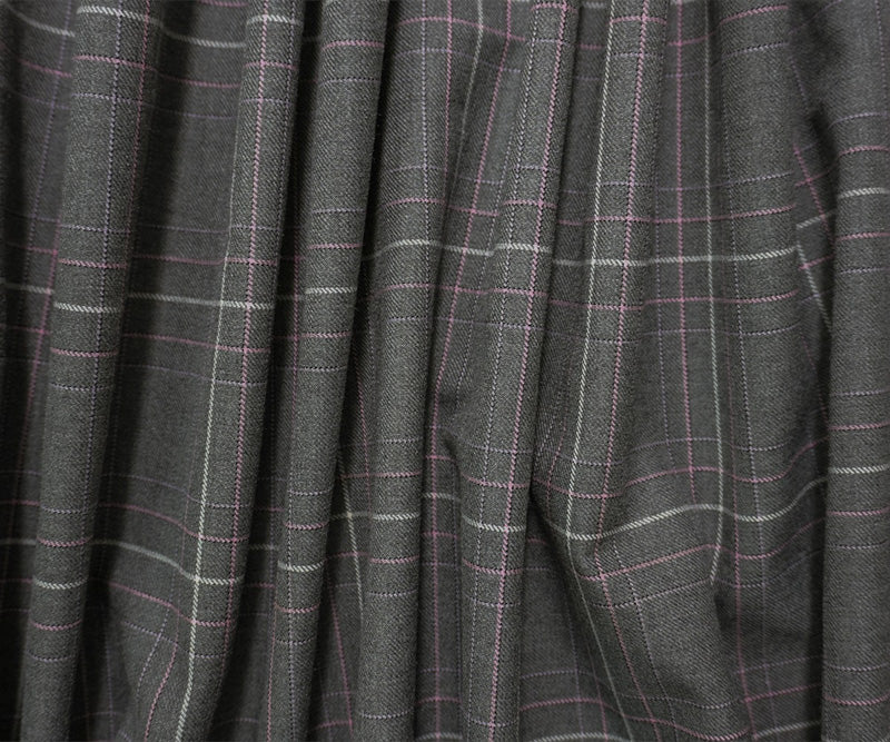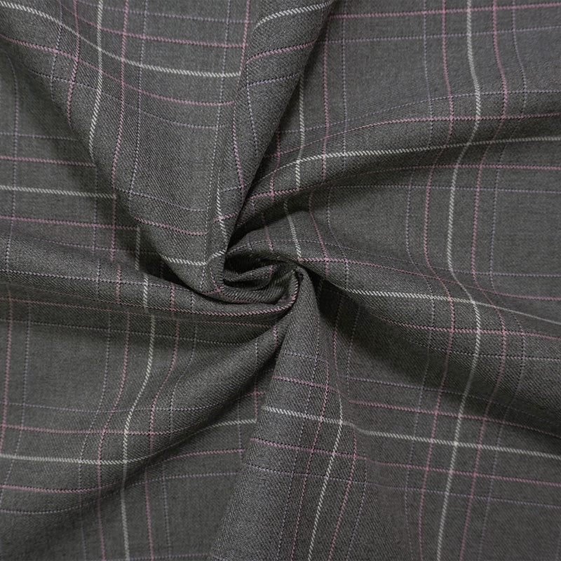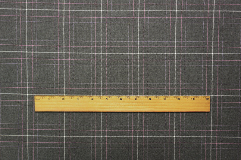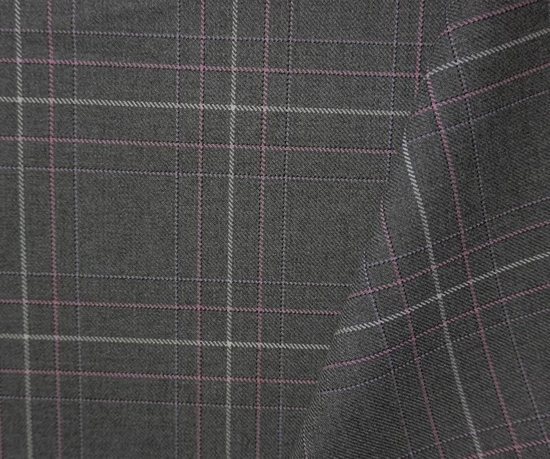 Gray-Pink-Multi Poly Wool Plaid Twill Woven Suiting Fabric