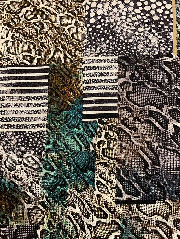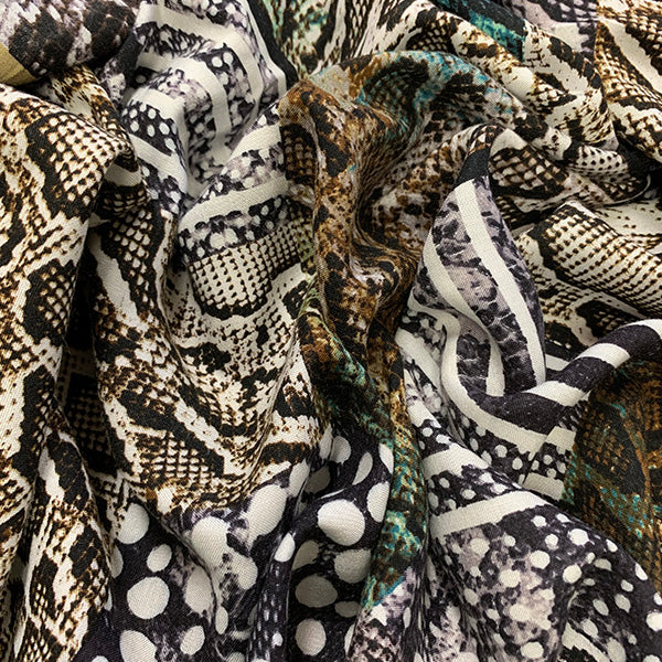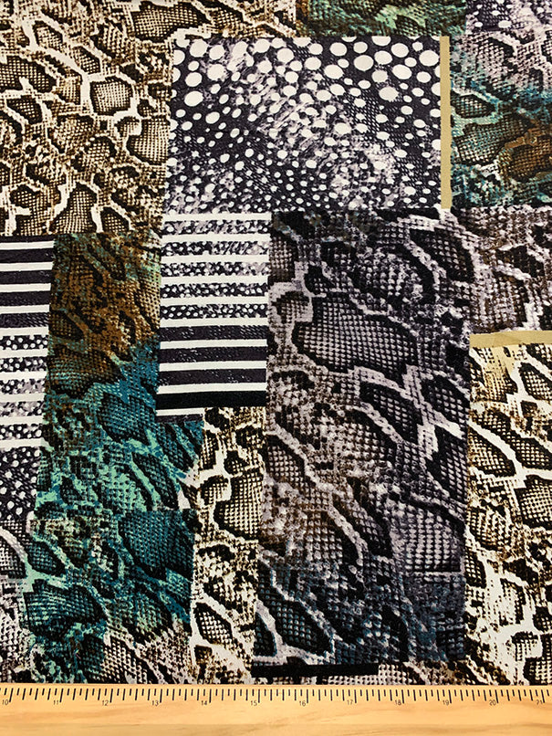 Shades of Gray Multi Animal Patchwork Print Rayon Challis Fabric