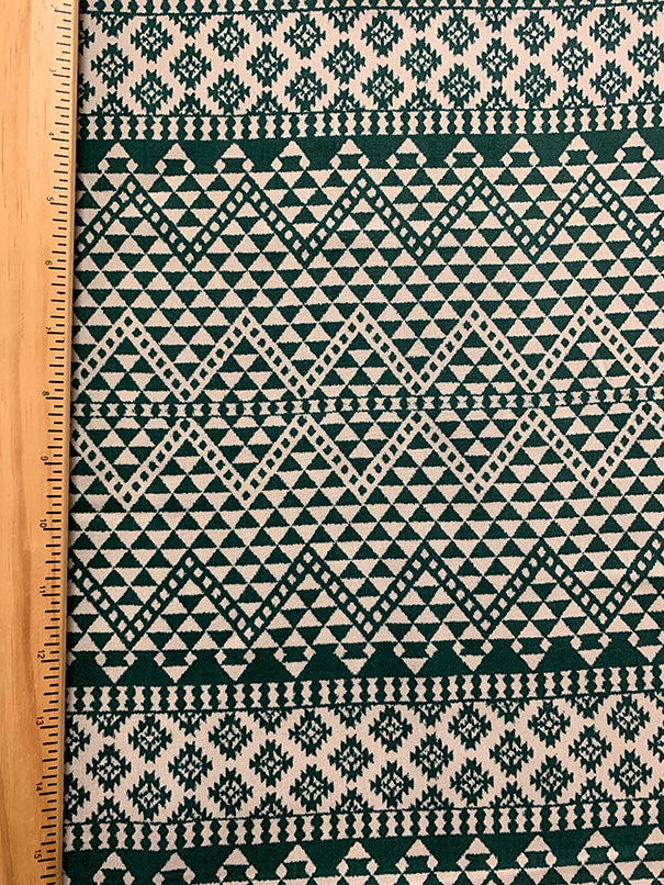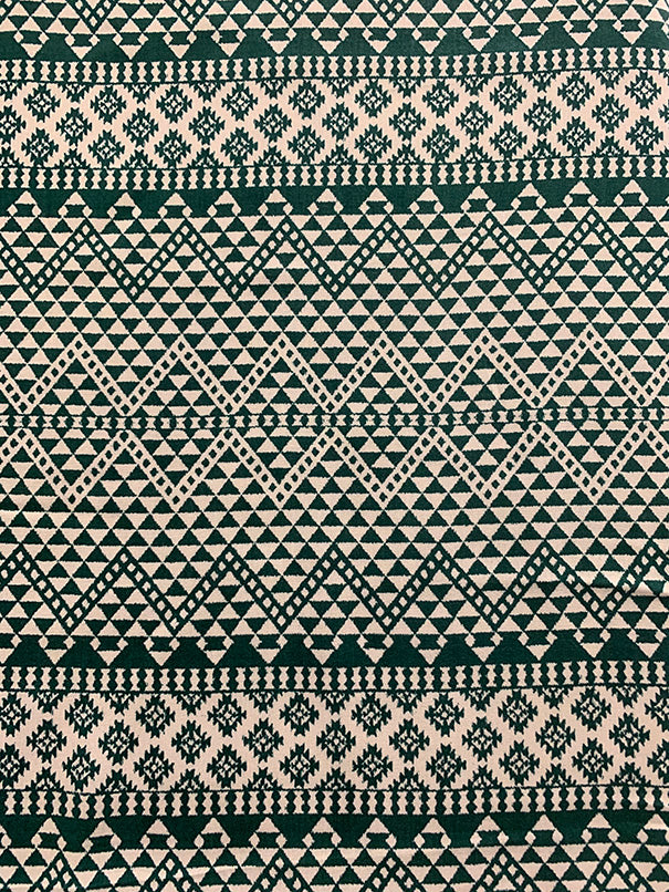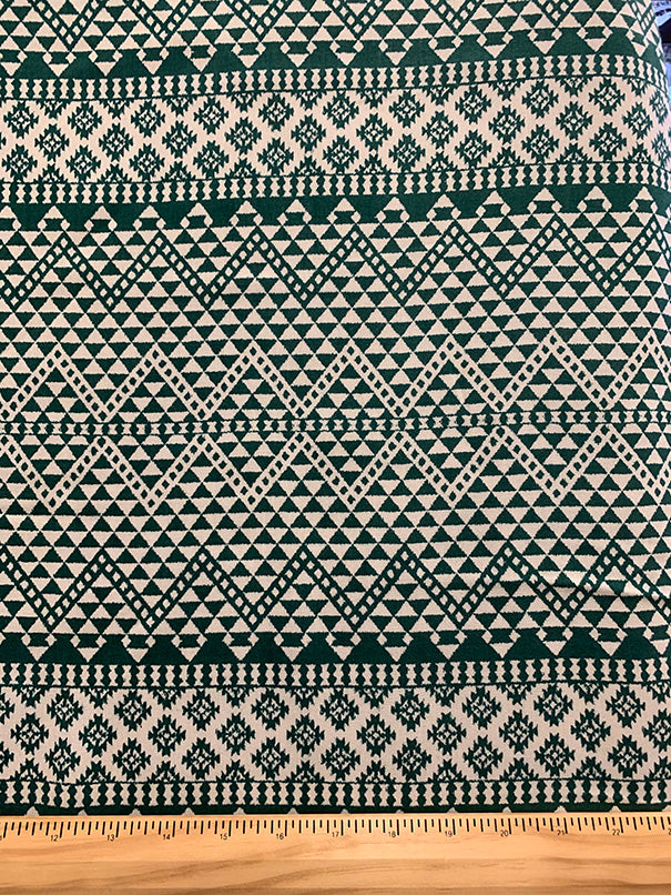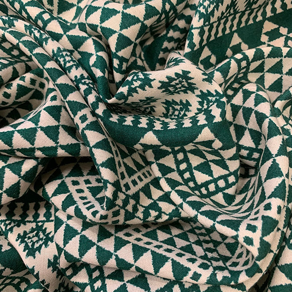 Green and White Multi Print Stripe Rayon Challis Fabric
