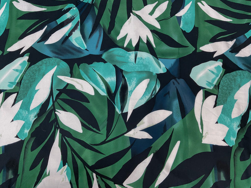 Green-Black-Multi Rayon Leaves Printed Momie Crepe Woven Fabric
