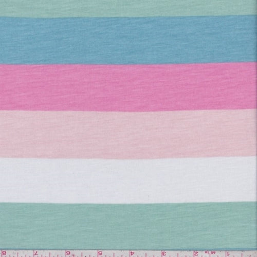 Green/Blue/Pink Pastel Stripe Jersey Knit Fabric