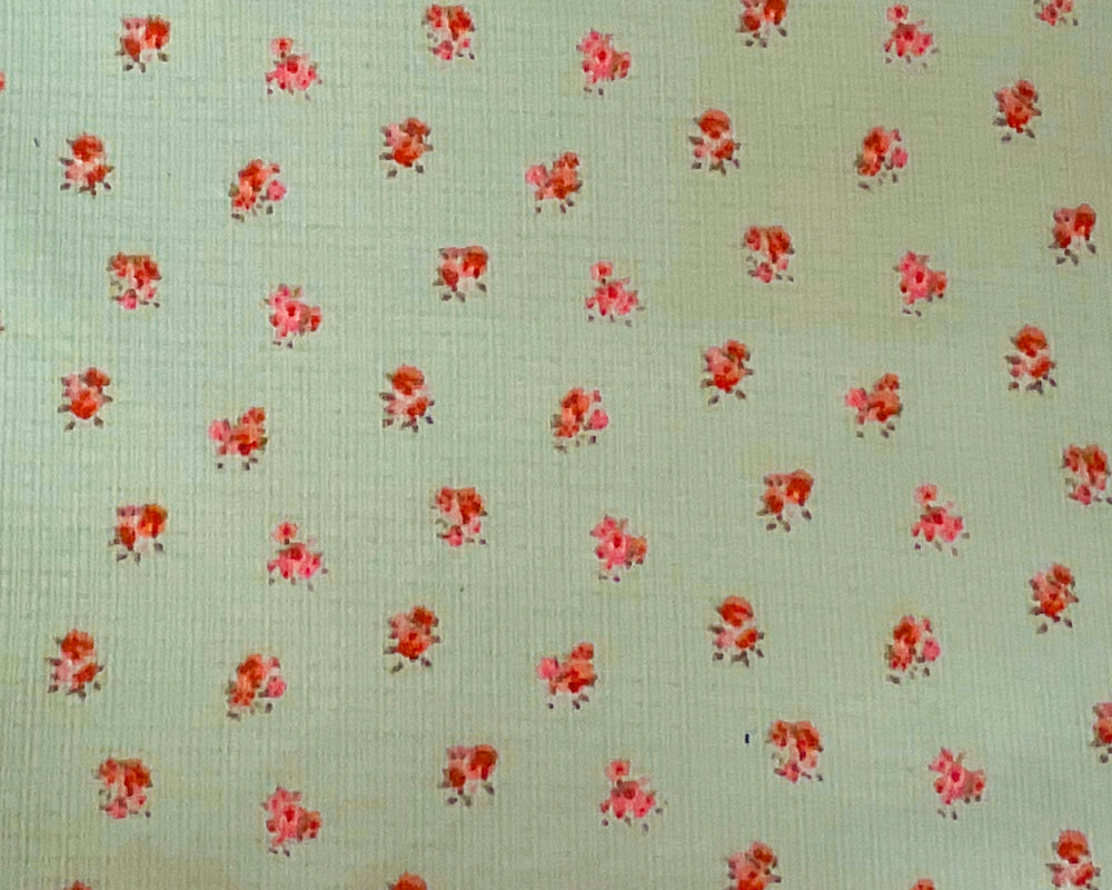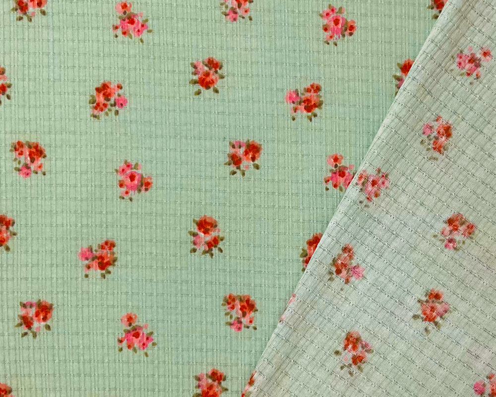 Green-Pink-Red Poly Blend Stretch Floral Printed Rib Knit Fabric