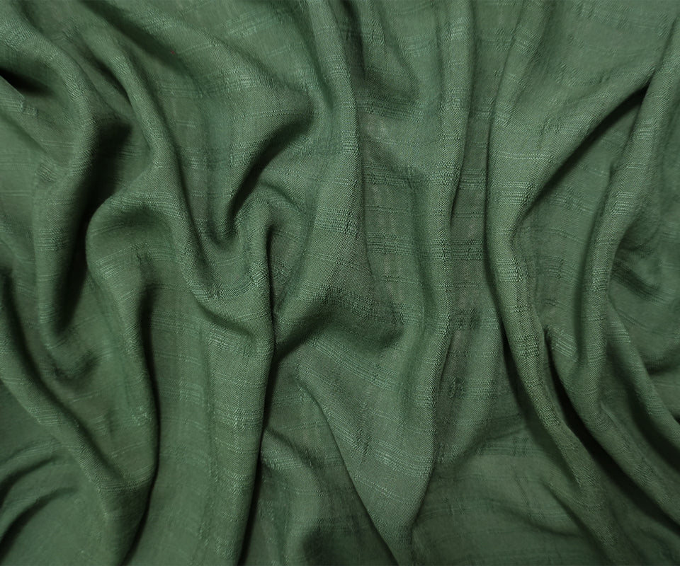 Green Rayon Plaid-Check Challis Woven Fabric