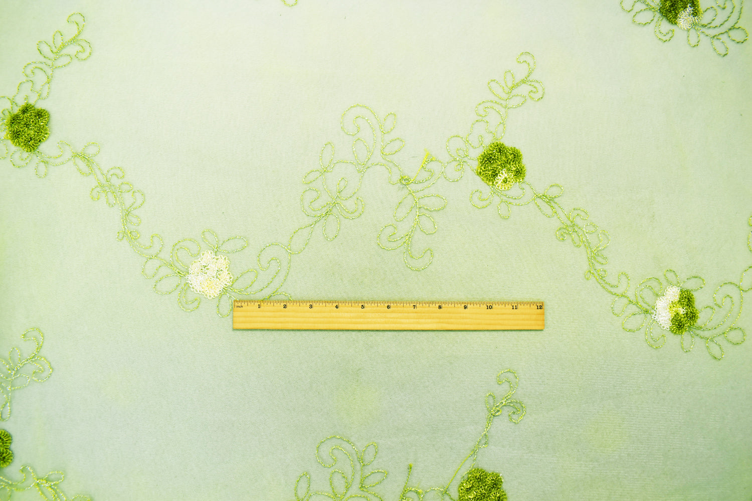 Green-Silver-Ivory Nylon Metallic Floral Embroidery Scallop Mesh Tulle Fabric