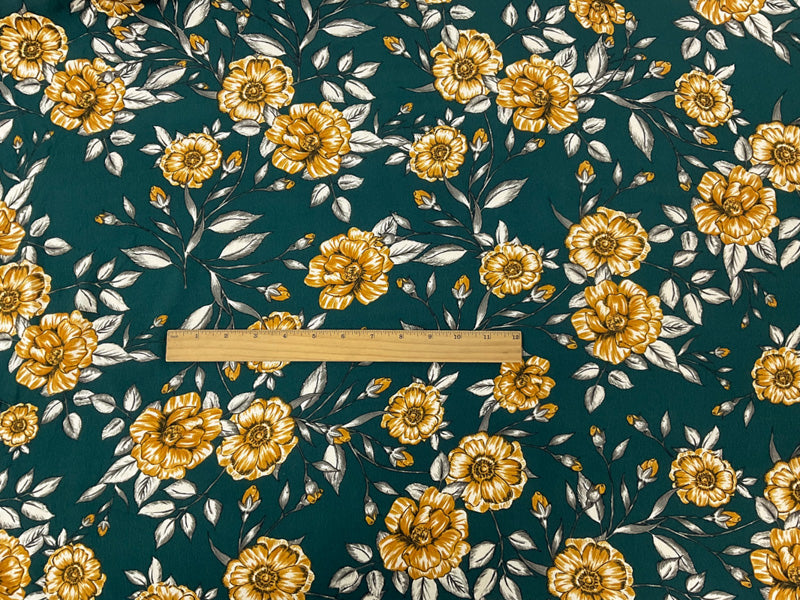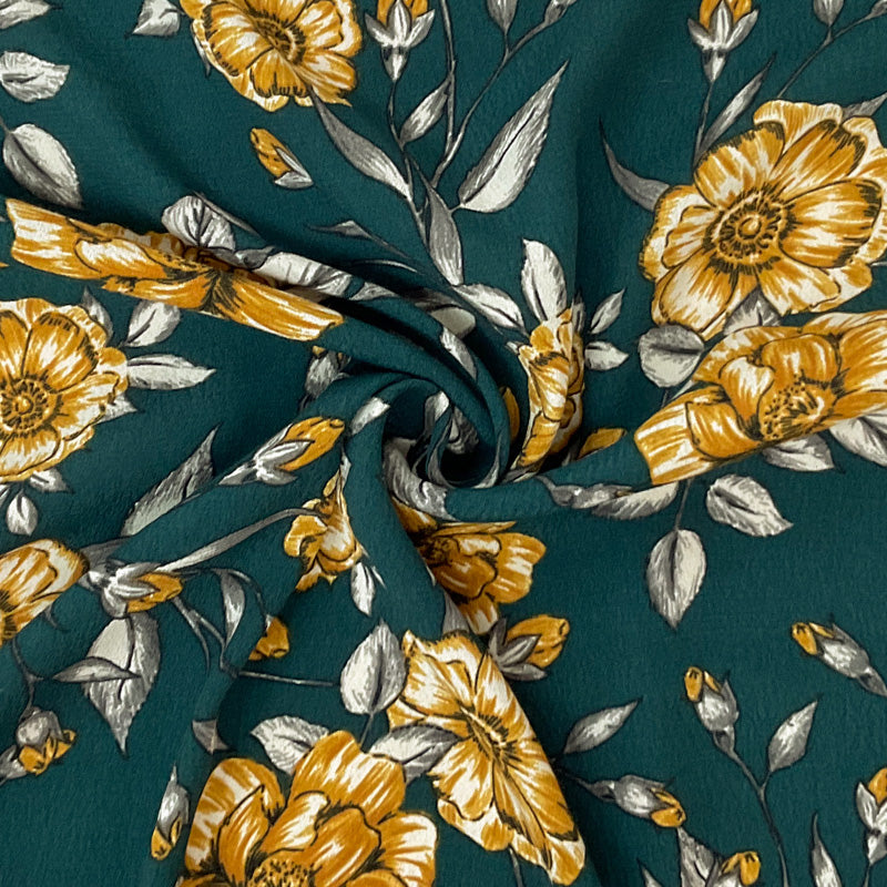 Green-Yellow-Multi Rayon Floral Printed Crepe Woven Fabric