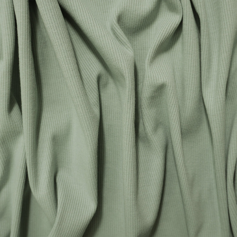 Mint Green Cotton Solid Stretch 2x1 Rib Knit Fabric