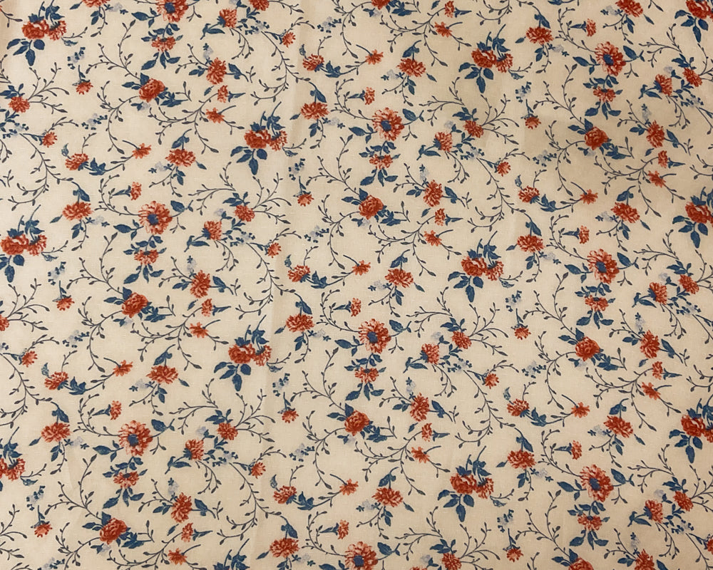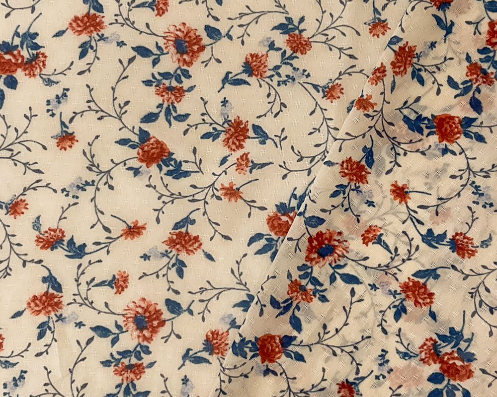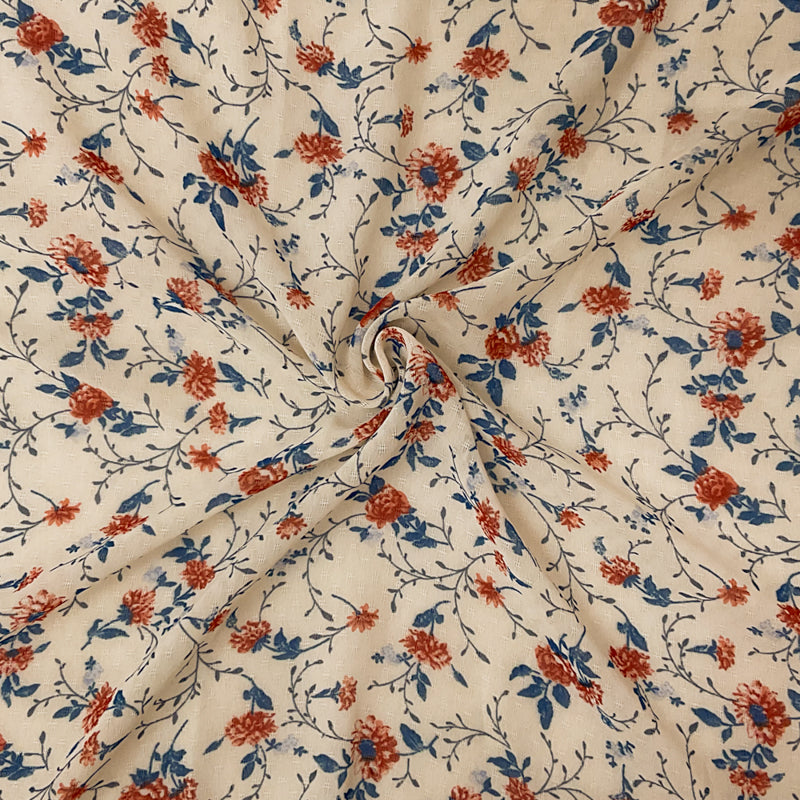 Ivory-Blue-Multi Poly Floral Printed Dobby Chiffon Woven Fabric