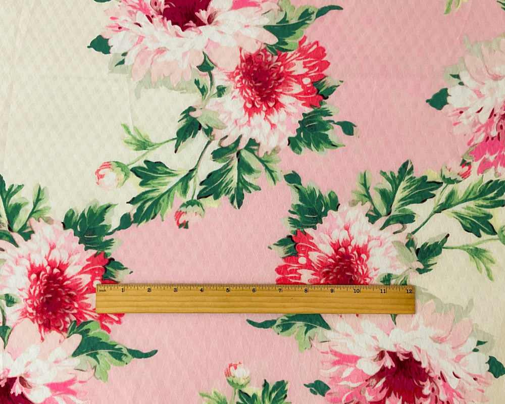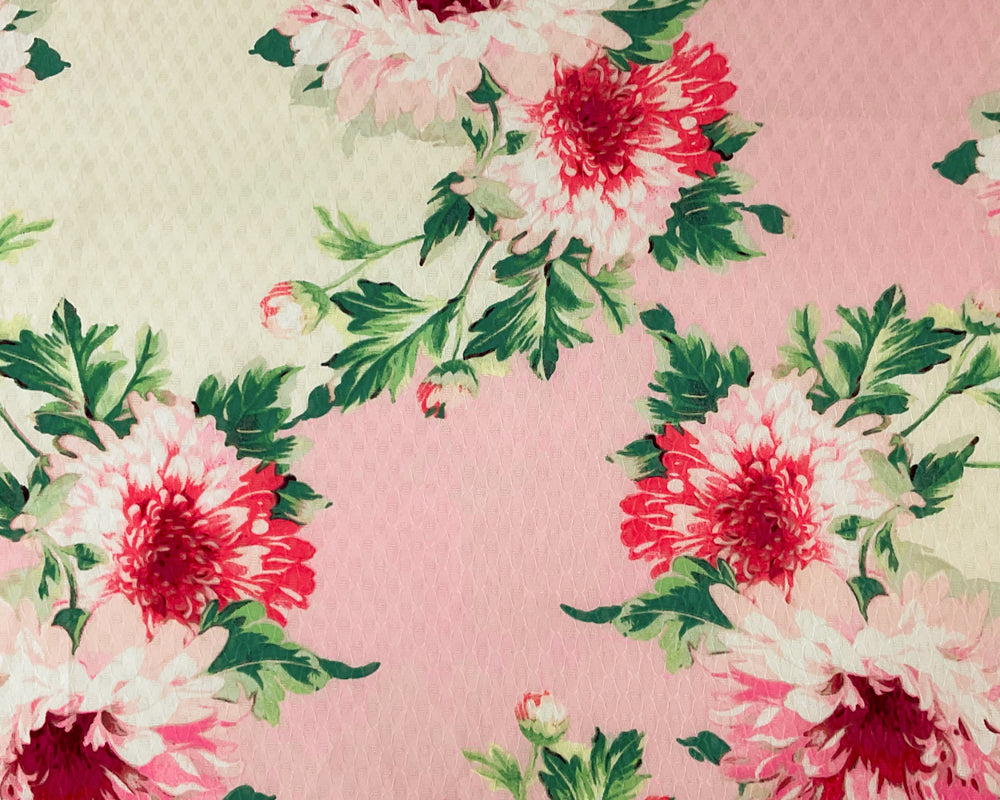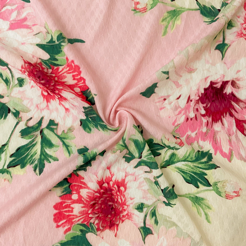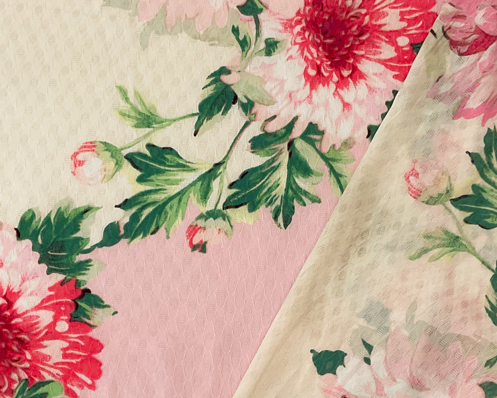 Ivory-Multi Poly Floral Printed Ogee Dobby Chiffon Woven Fabric