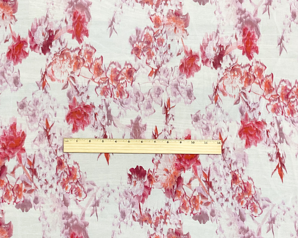Ivory-Pink-Multi Poly Floral Printed Chiffon Woven Fabric
