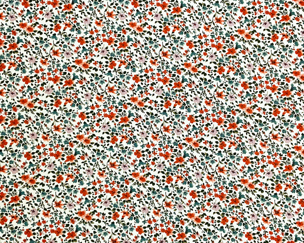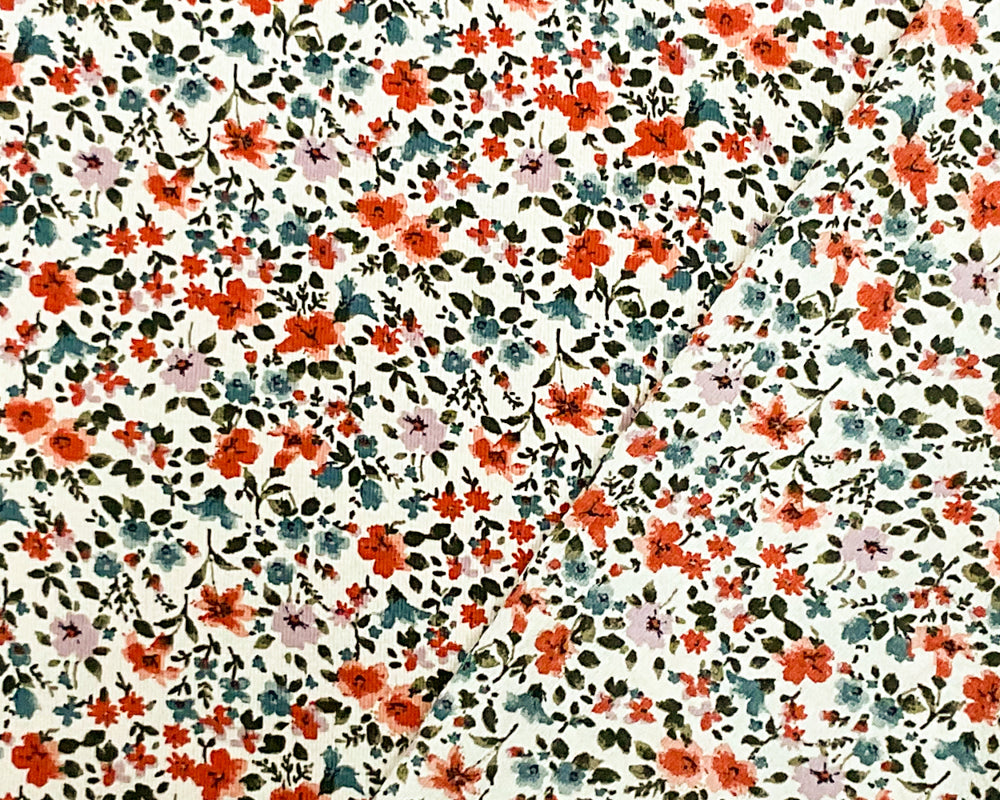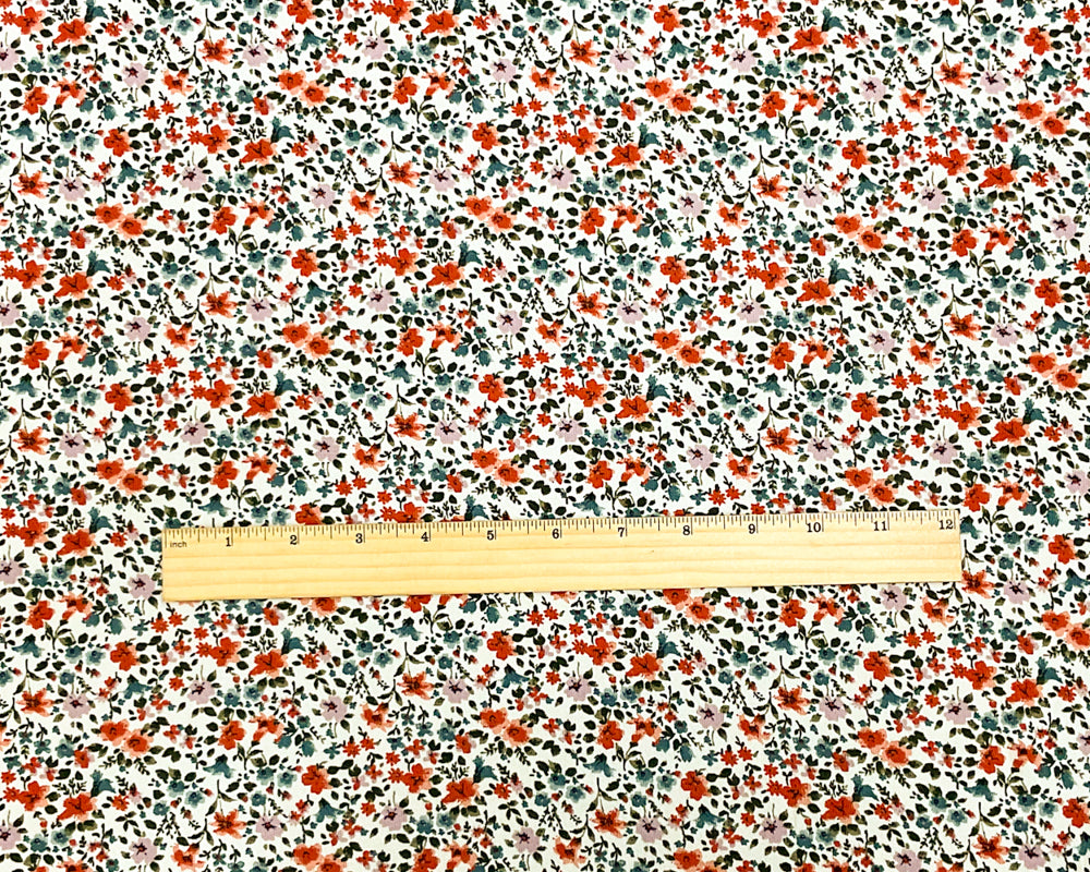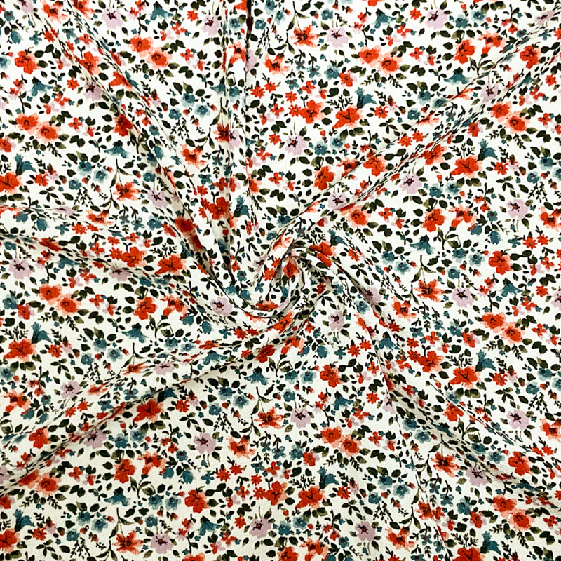 Ivory-Red-Multi Poly Floral Printed Pebble Crepe Woven Fabric