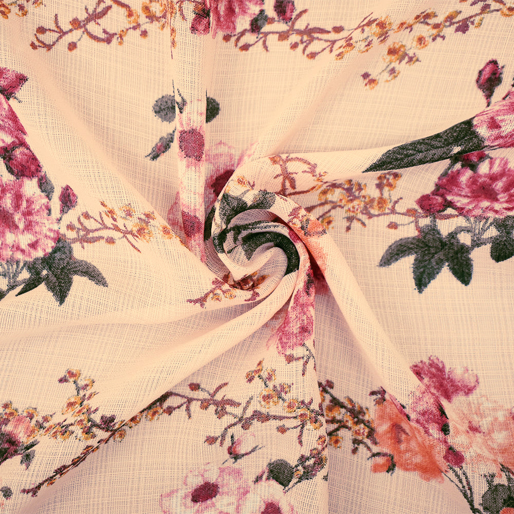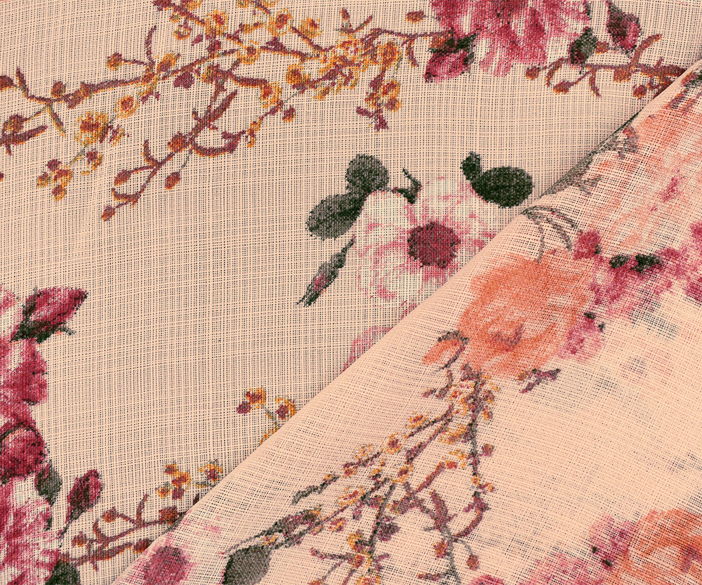 Light Orange-Multi Nylon Floral Printed Sheer Woven Fabric