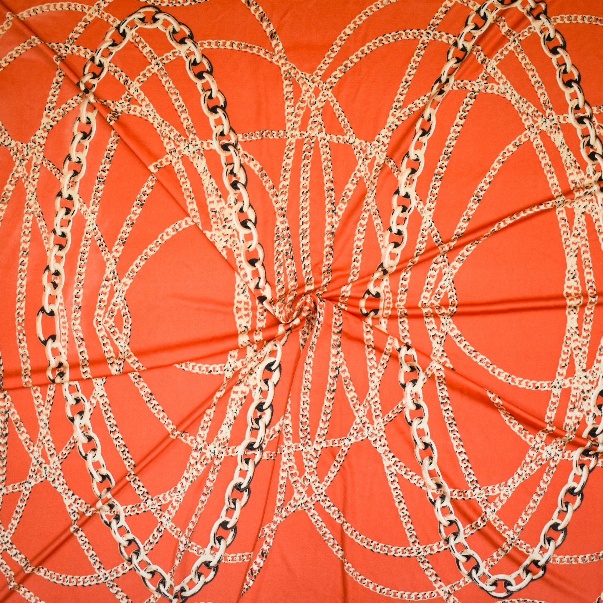 Orange-Beige-Multi Chain Printed Stretch Silk Jersey Knit