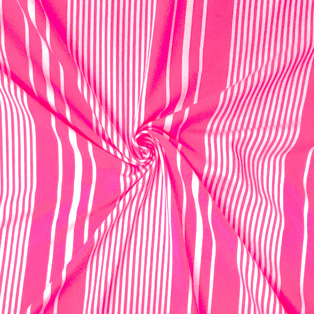 Neon Pink-White Poly Spandex Stretch Stripe Print DB Jersey Knit Fabric