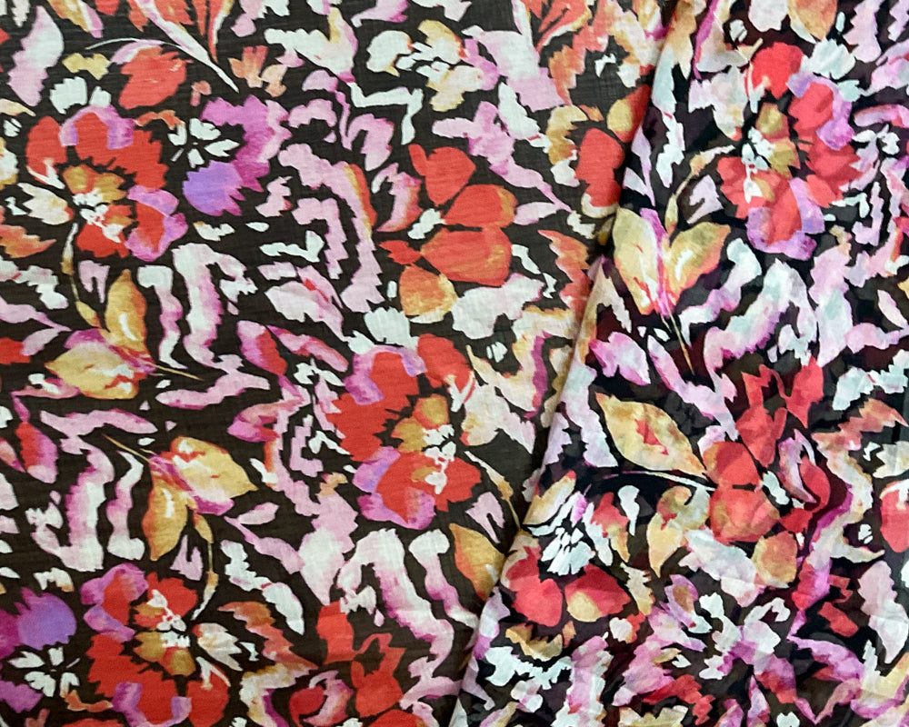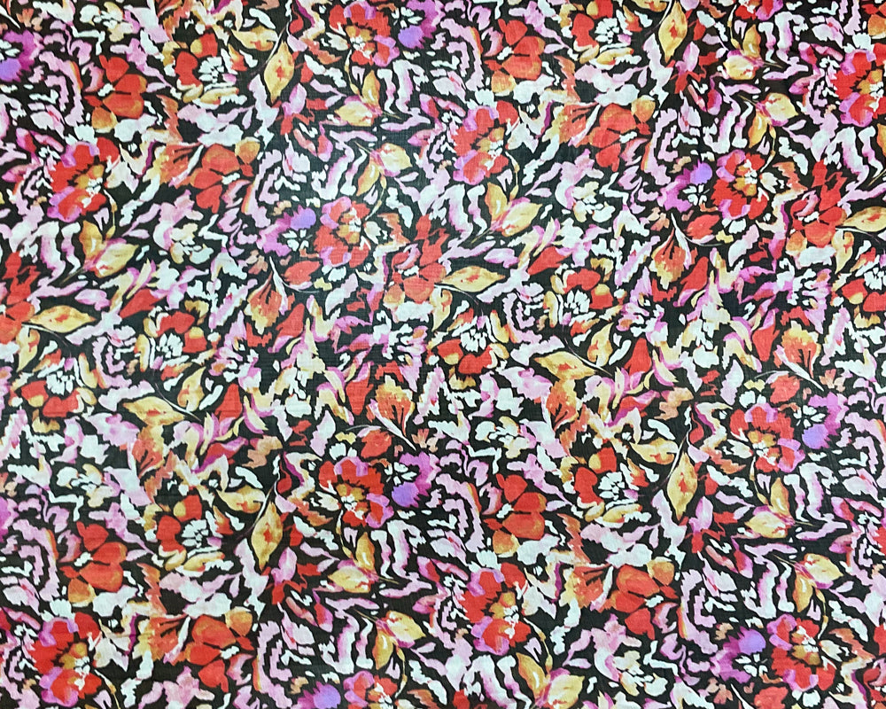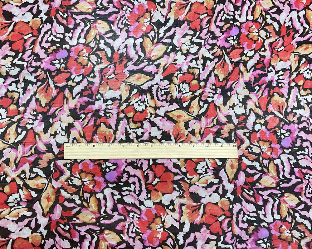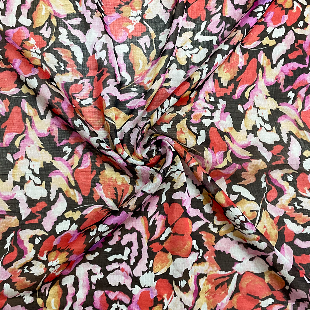 Pink-Black-Multi Poly Floral Printed Crinkle Yoryu Chiffon Woven Fabric