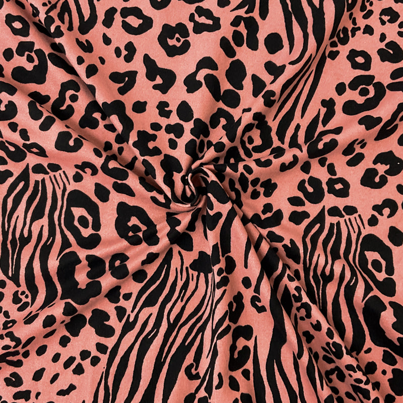 Pink-Black Poly Stretch Leopard Print DB Jersey Knit Fabric
