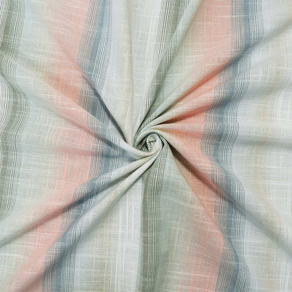 Pink-Blue-Multi Cotton-Rayon Famous Maker Vertical Stripe Slub Woven Fabric