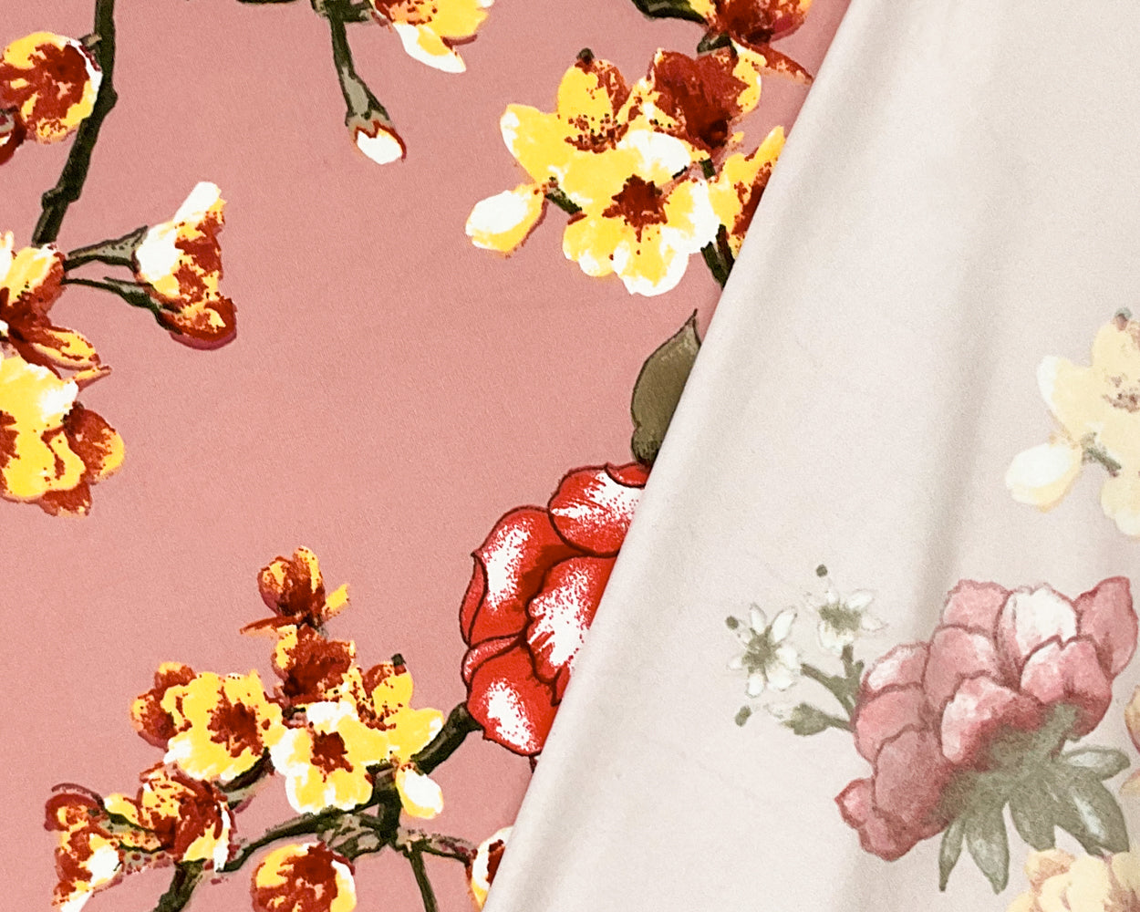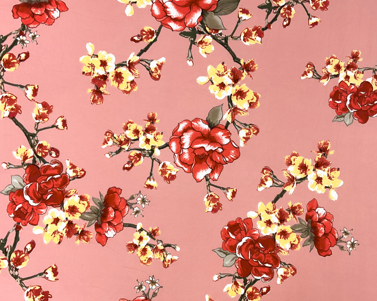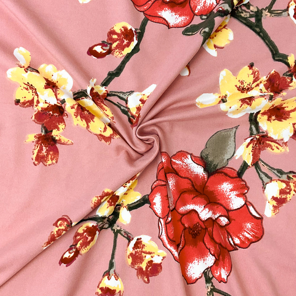 -Pink-Multi Poly Spandex Stretch Floral Print Double Brush Jersey Knit Fabric