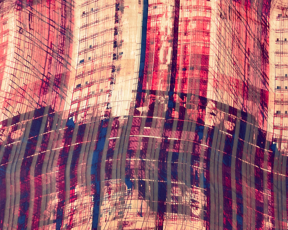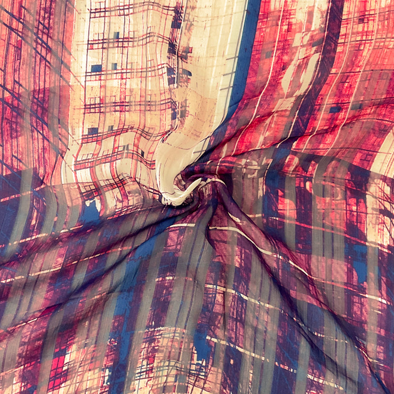 Purple-Multi Abstract Print Satin Stripe Chiffon Woven Fabric