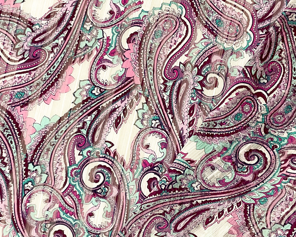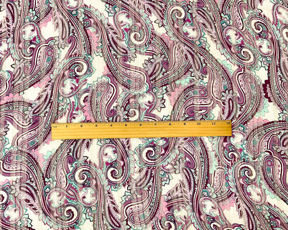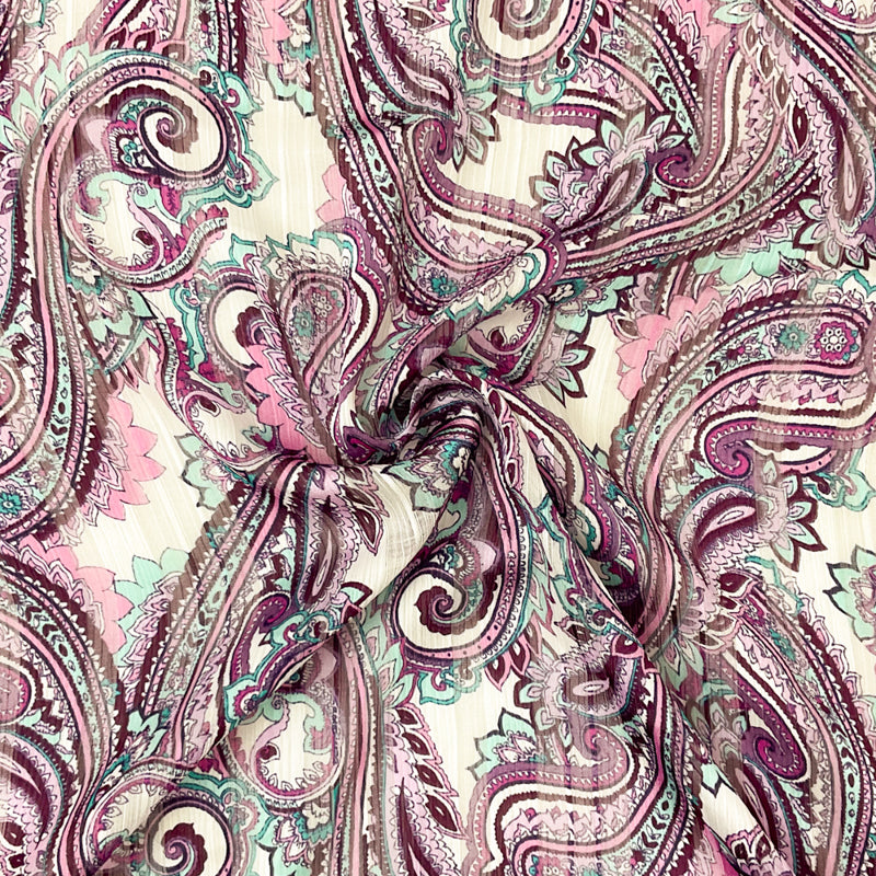 Purple-Multi Poly Paisley Print Satin Stripe Chiffon Woven Fabric