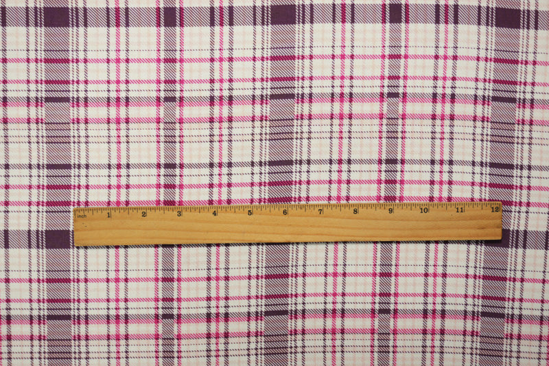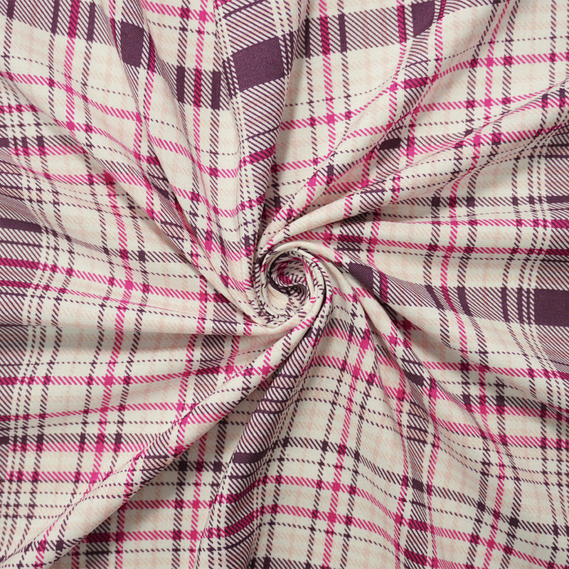Purple-Pink-White Rayon Plaid Printed Challis Woven Fabric