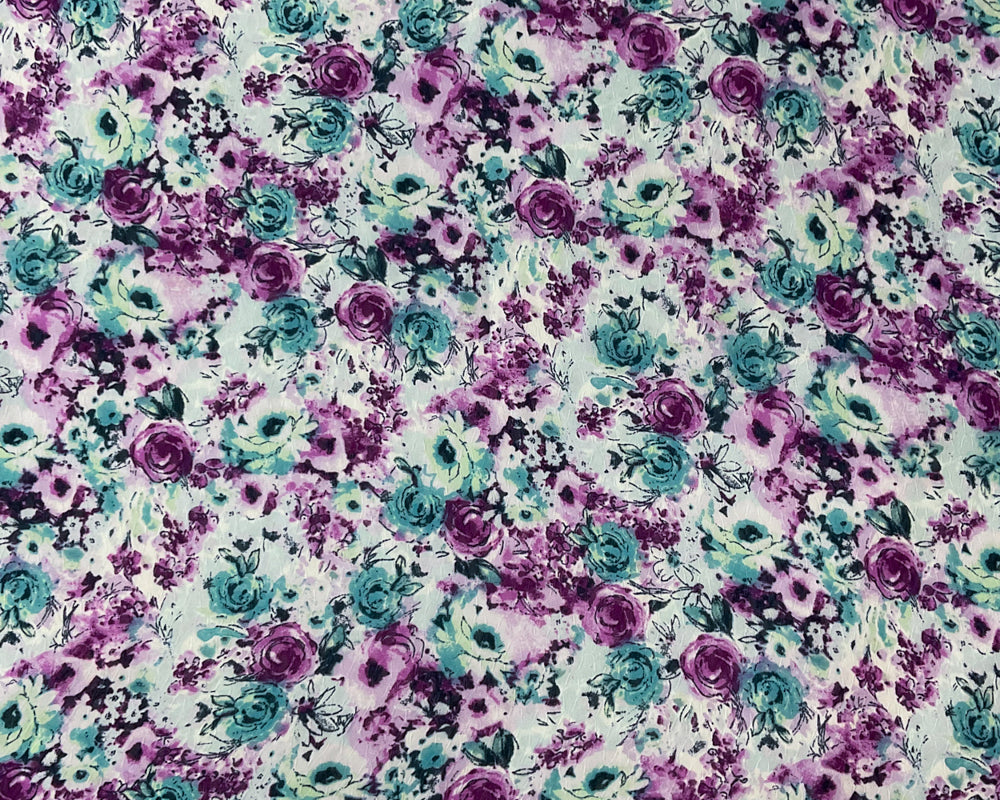 Purple-Teal-Multi Poly Floral Print Ogee Dobby Chiffon Woven Fabric
