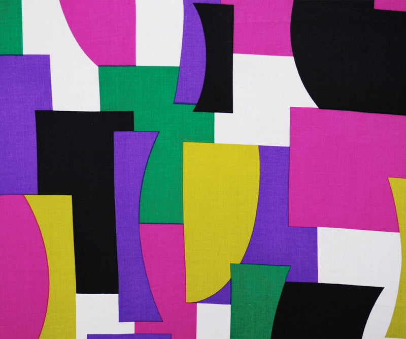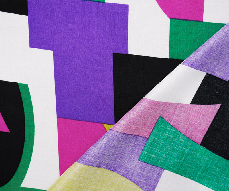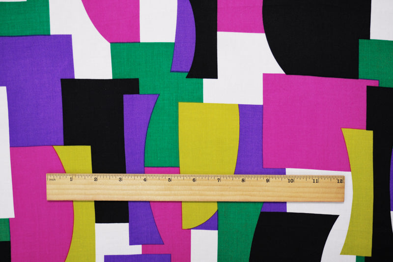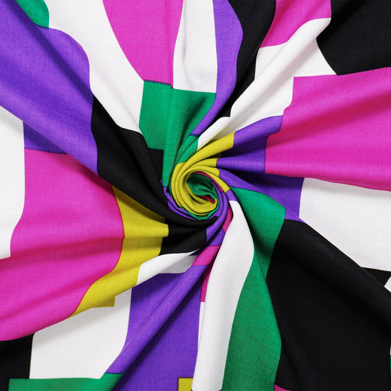 Purple-White-Multi Rayon Geometric Printed Voile Woven Fabric