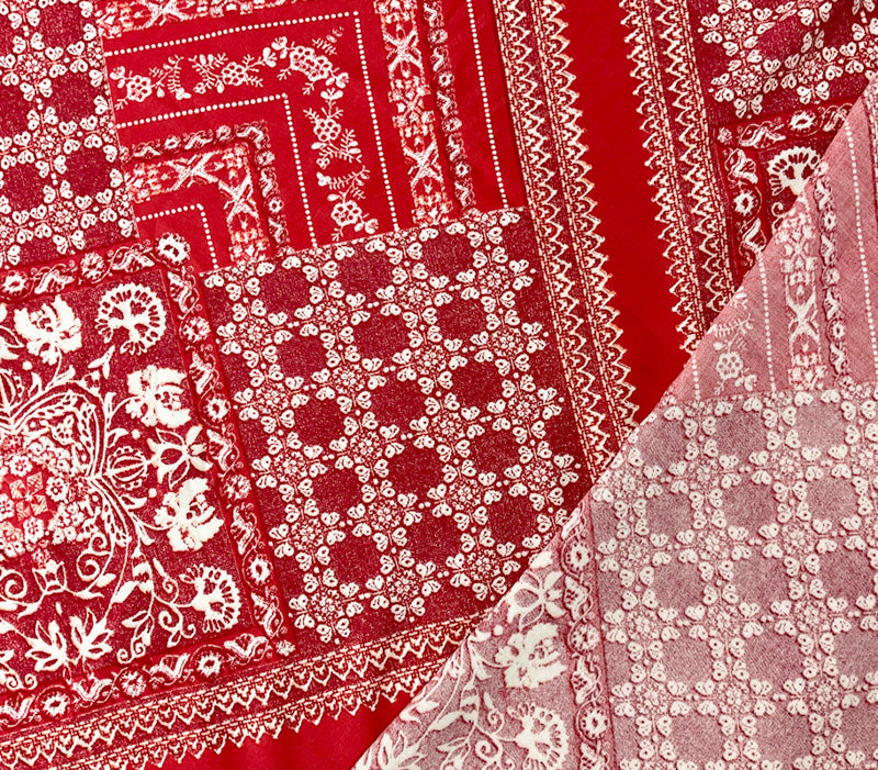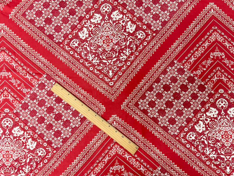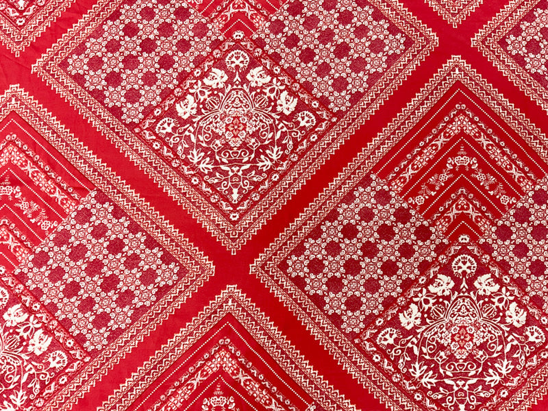Red-White-Orange Rayon Floral Bandana Printed Challis Woven Fabric