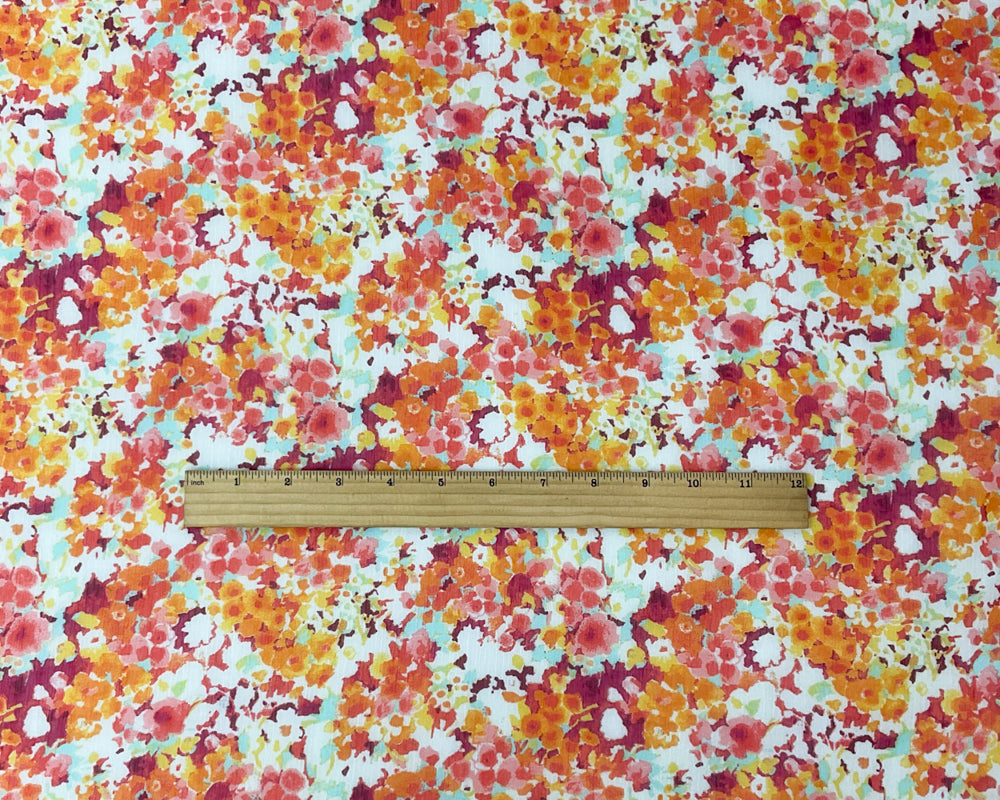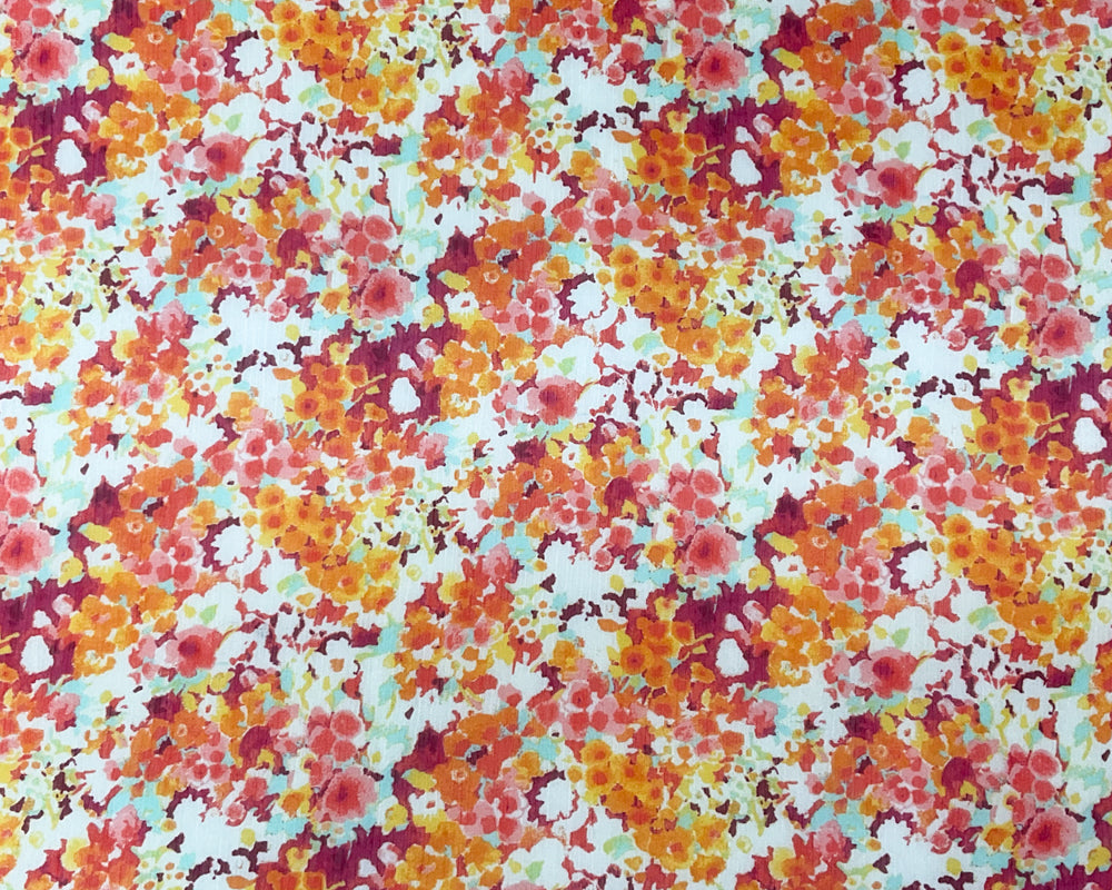 Red-Yellow Poly Floral Printed Crinkle Yoryu Chiffon Woven Fabric