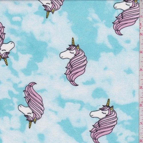 Blue - Pink Unicorn Dream Double Brushed Jersey Knit Fabric
