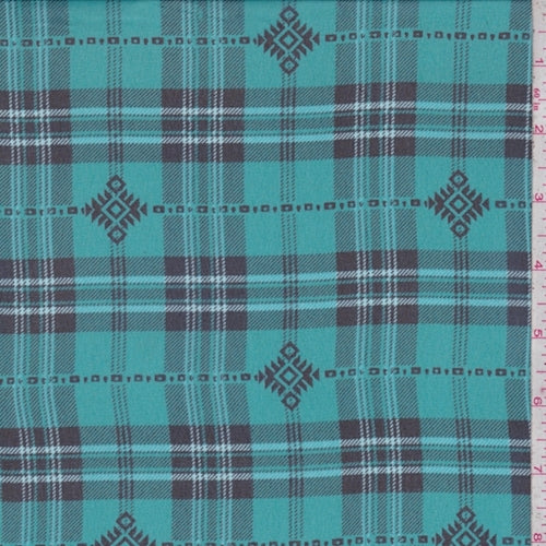 Dark Turquoise/Black Tartan Plaid Chiffon Fabric
