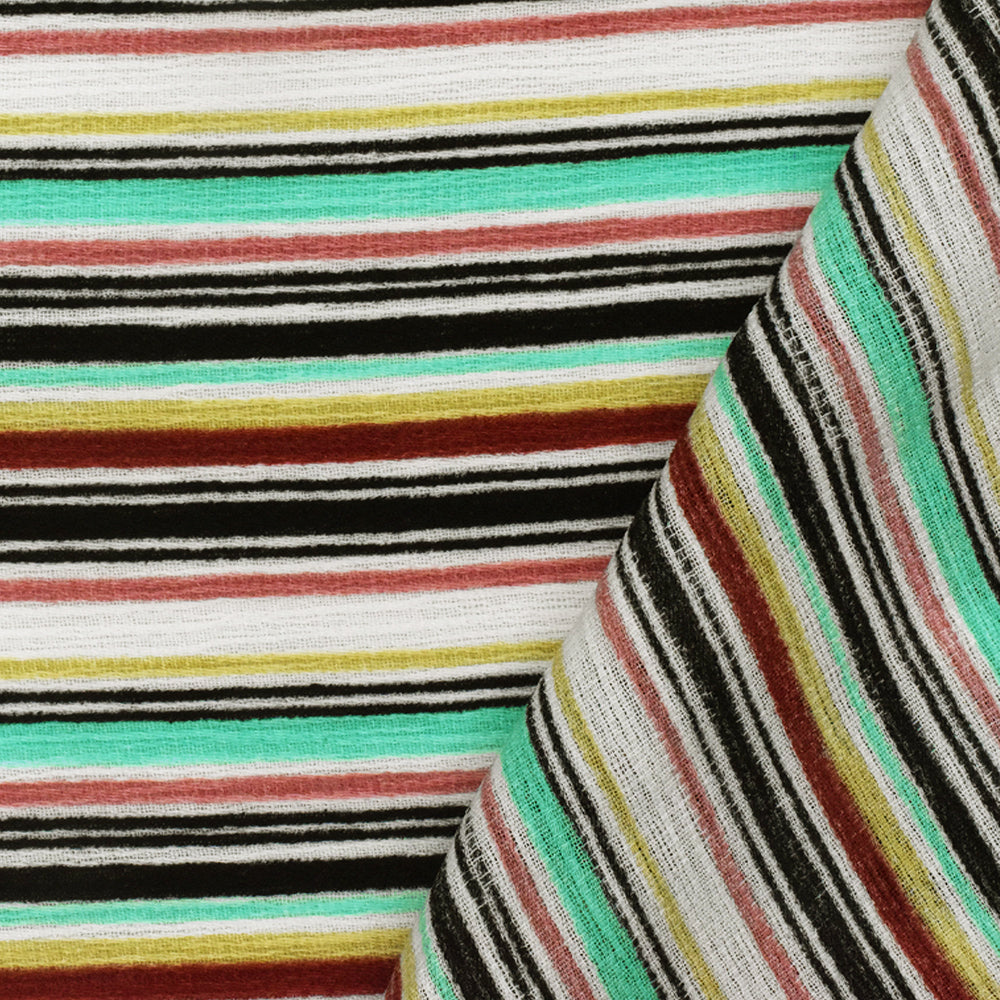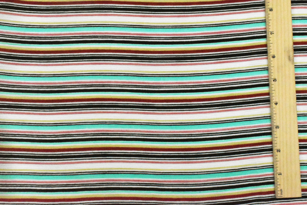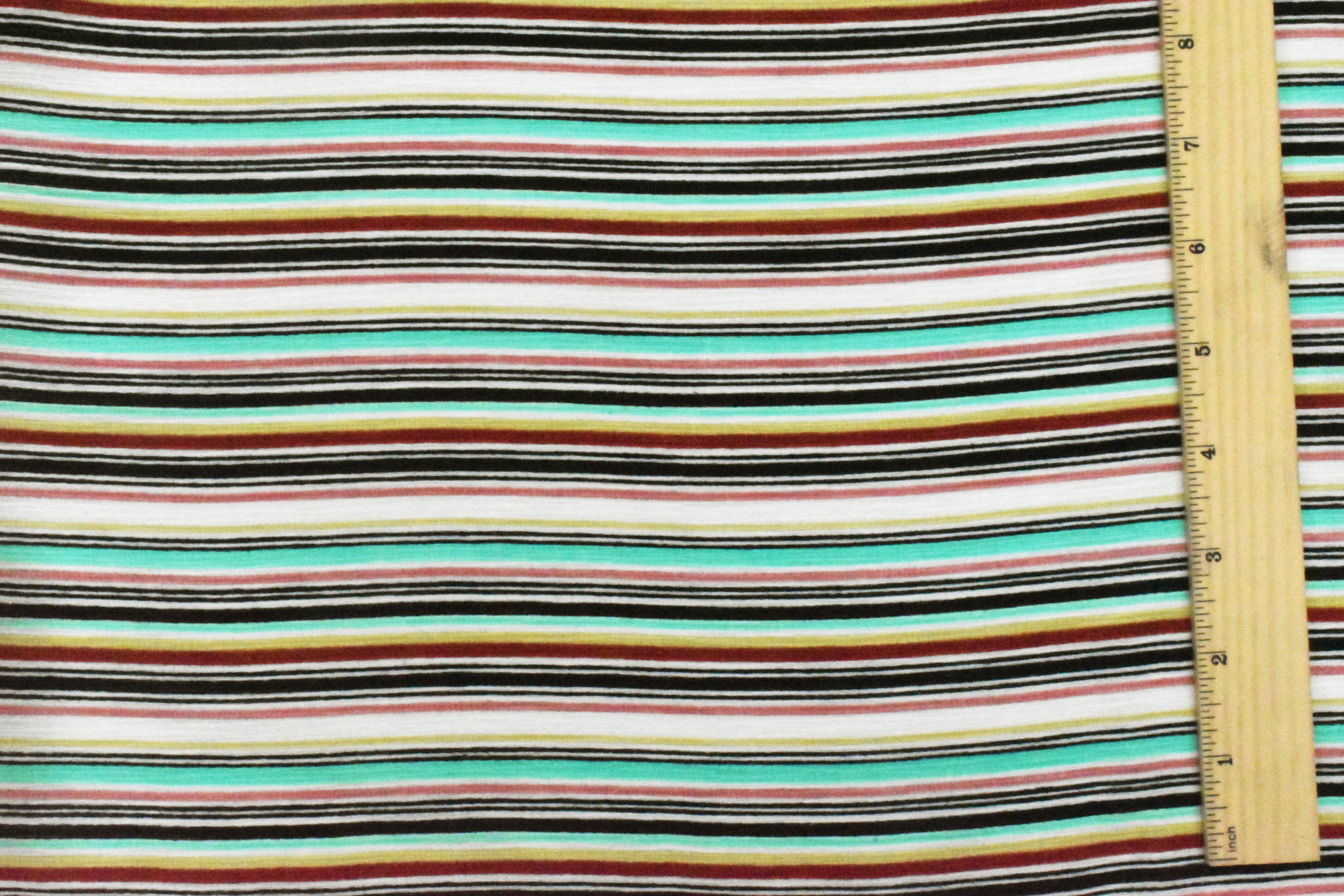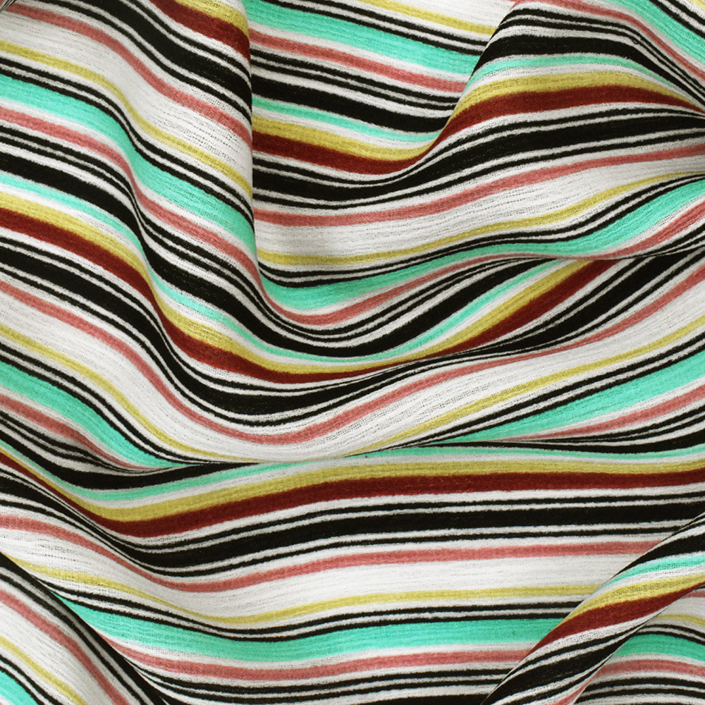 Red-Mint-Multi Stripe Printed Striated Texture Woven Fabric