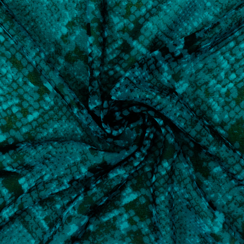 Teal-Black Reptile Printed Poly Chiffon Woven Fabric